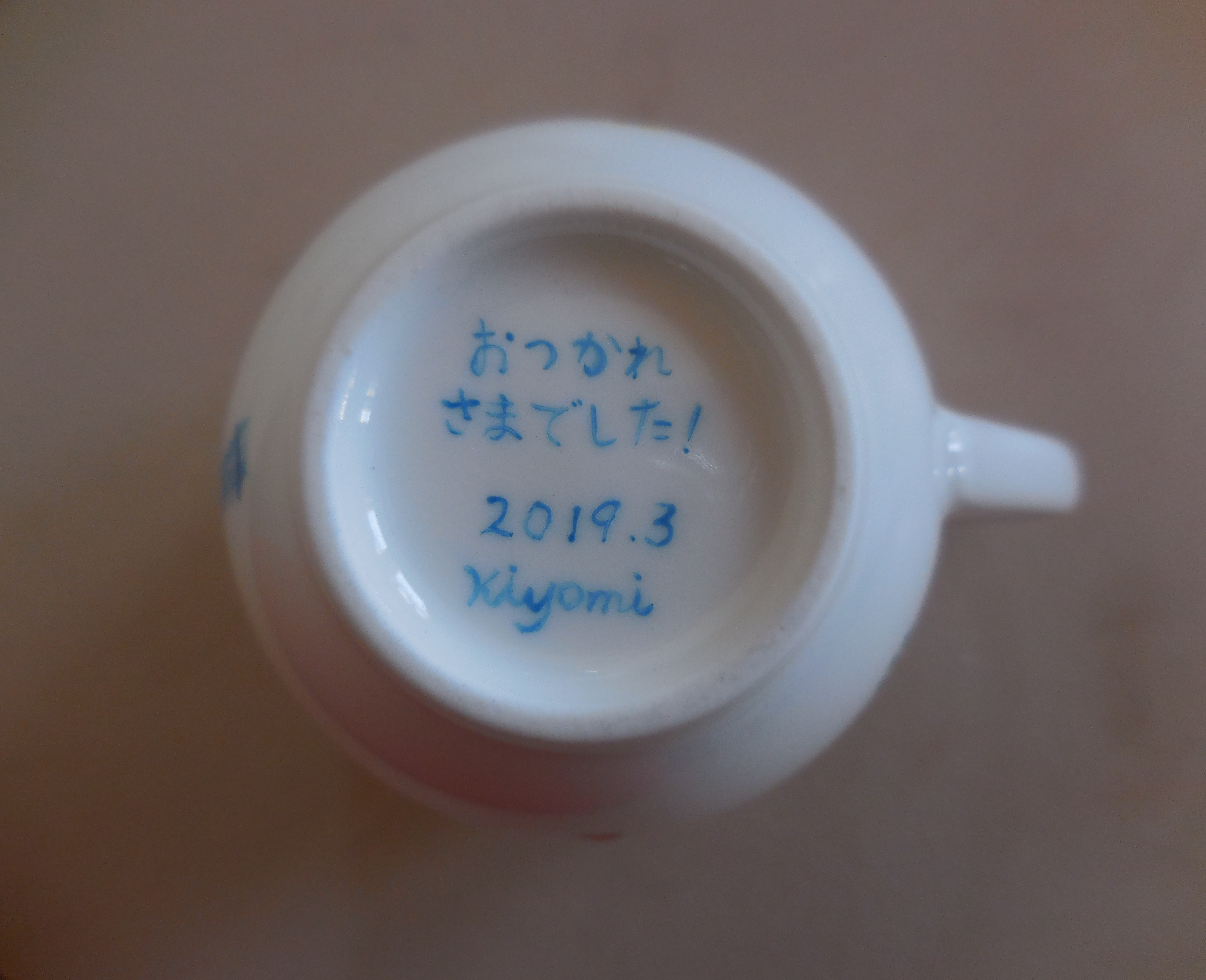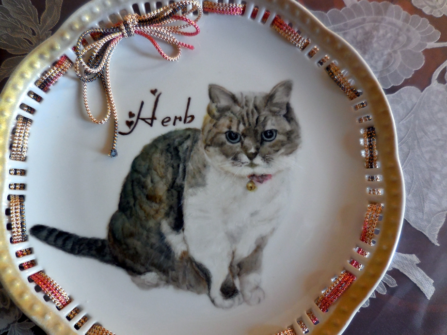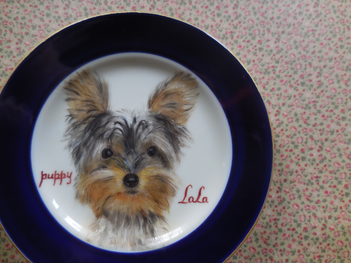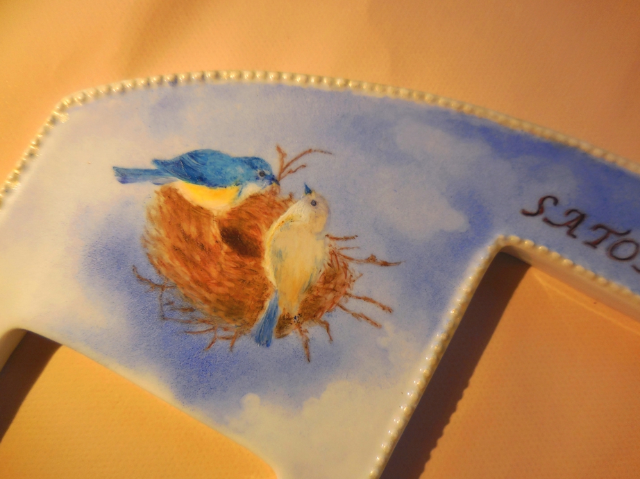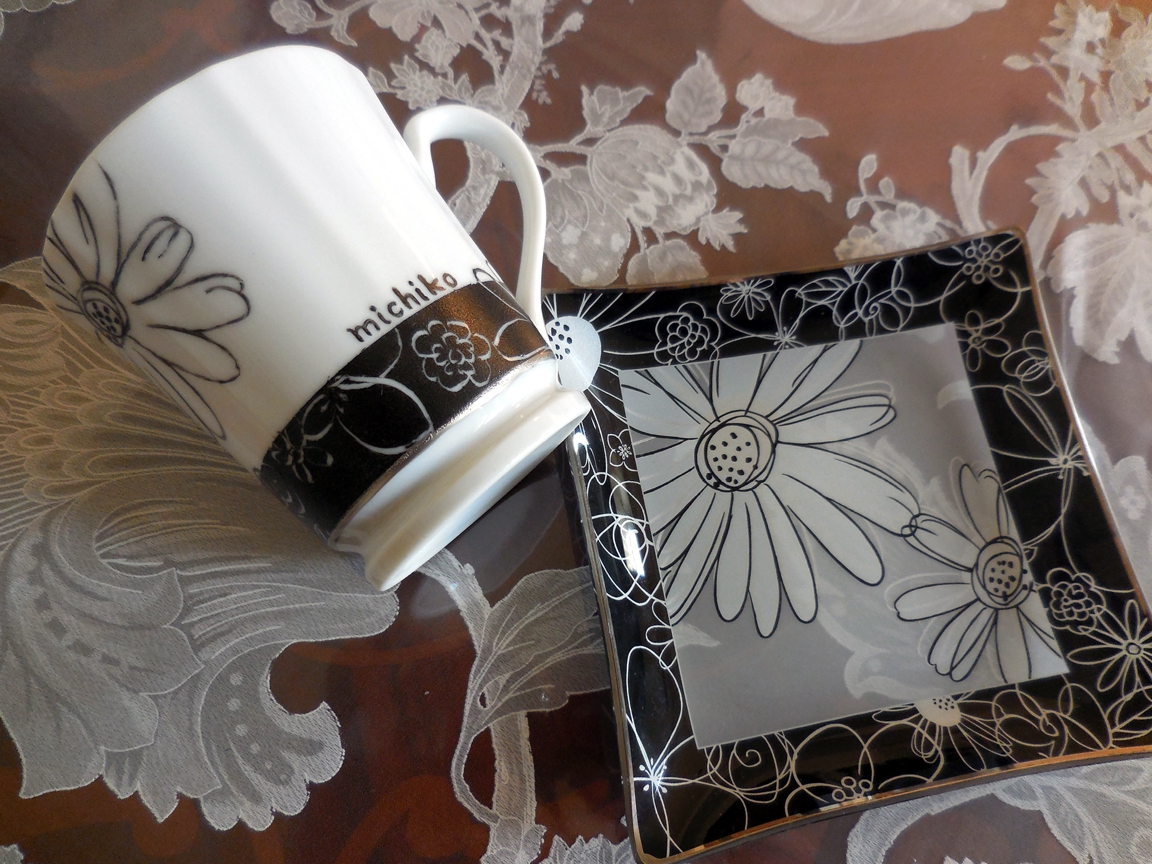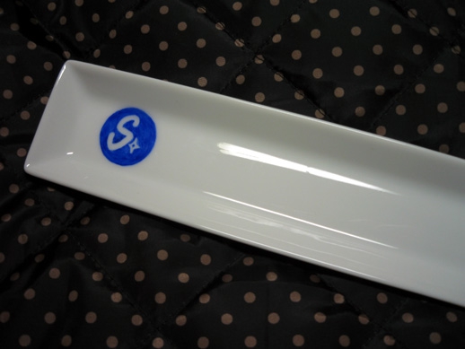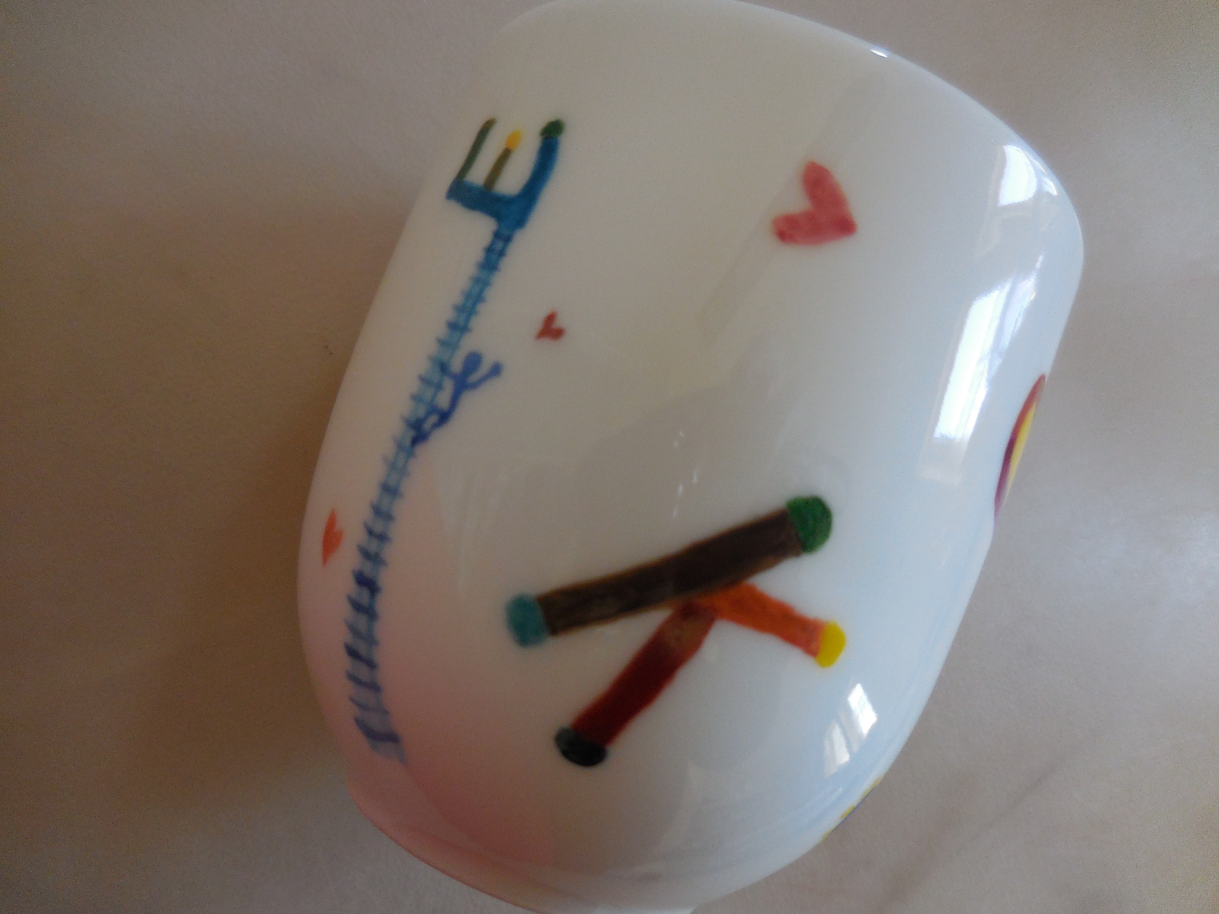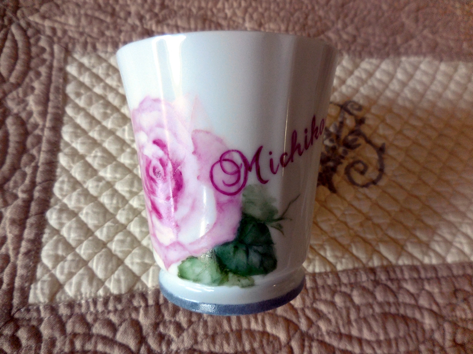 メディウムで溶いた専用の絵具で、陶磁器にモチーフを描き
