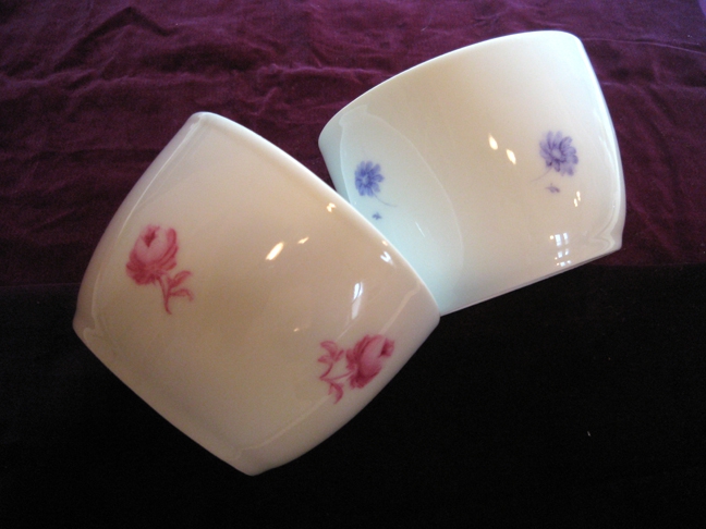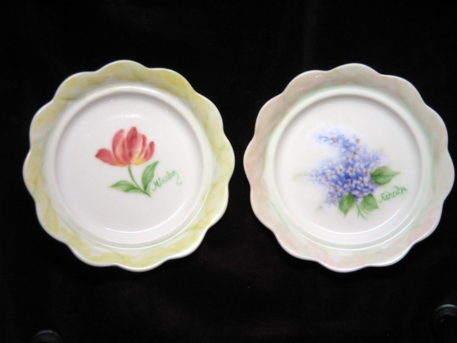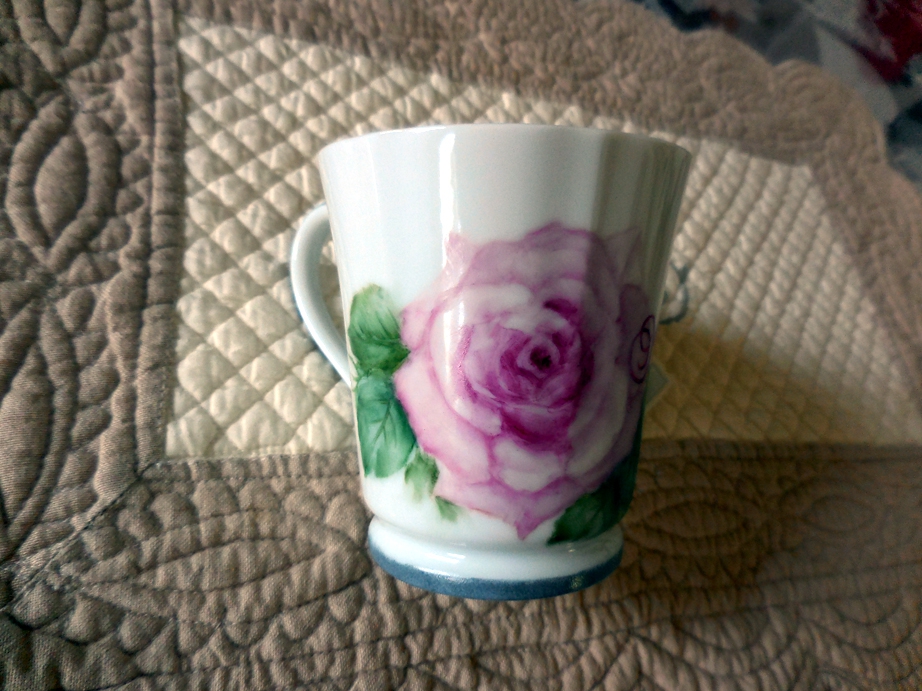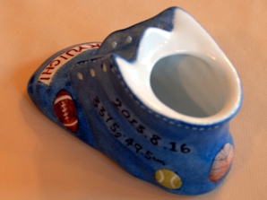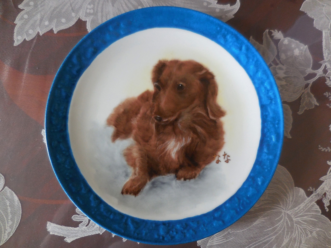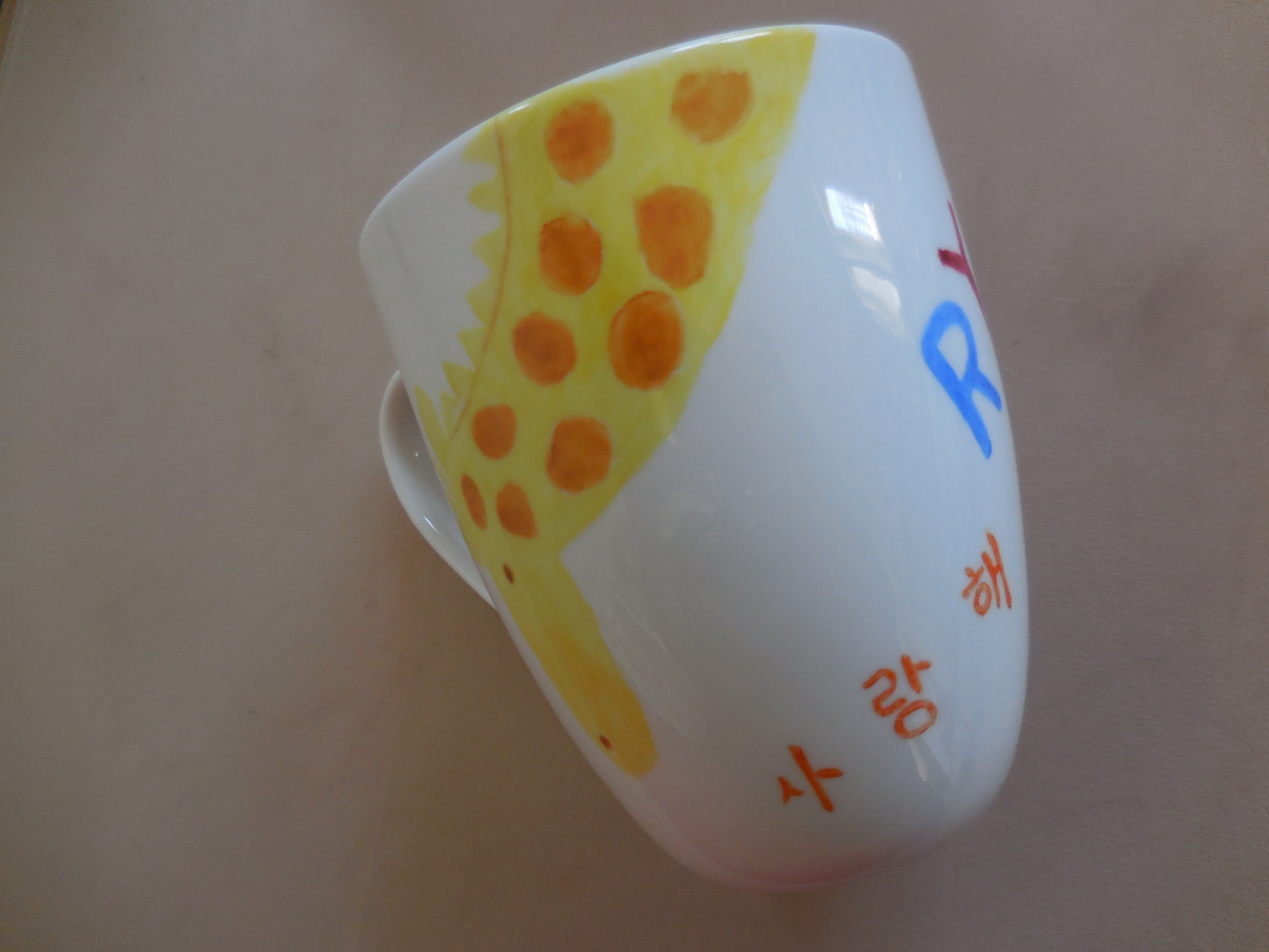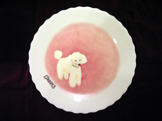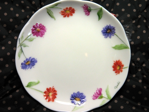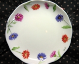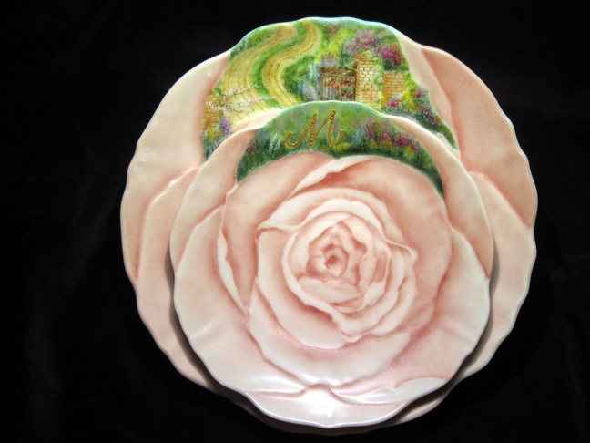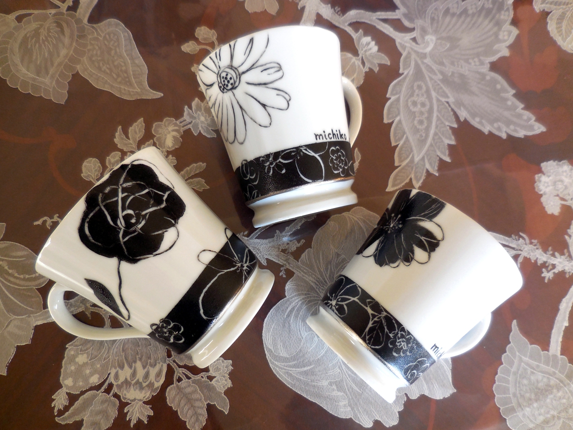 メディウムで溶いた専用の絵具で、陶磁器にモチーフを描き