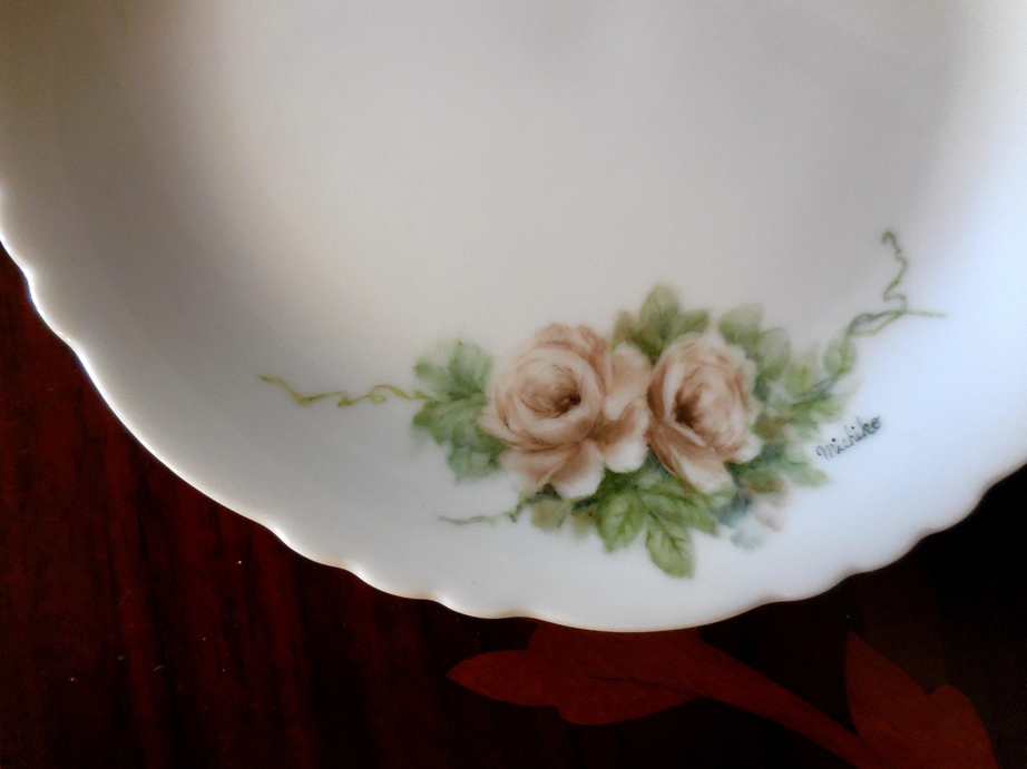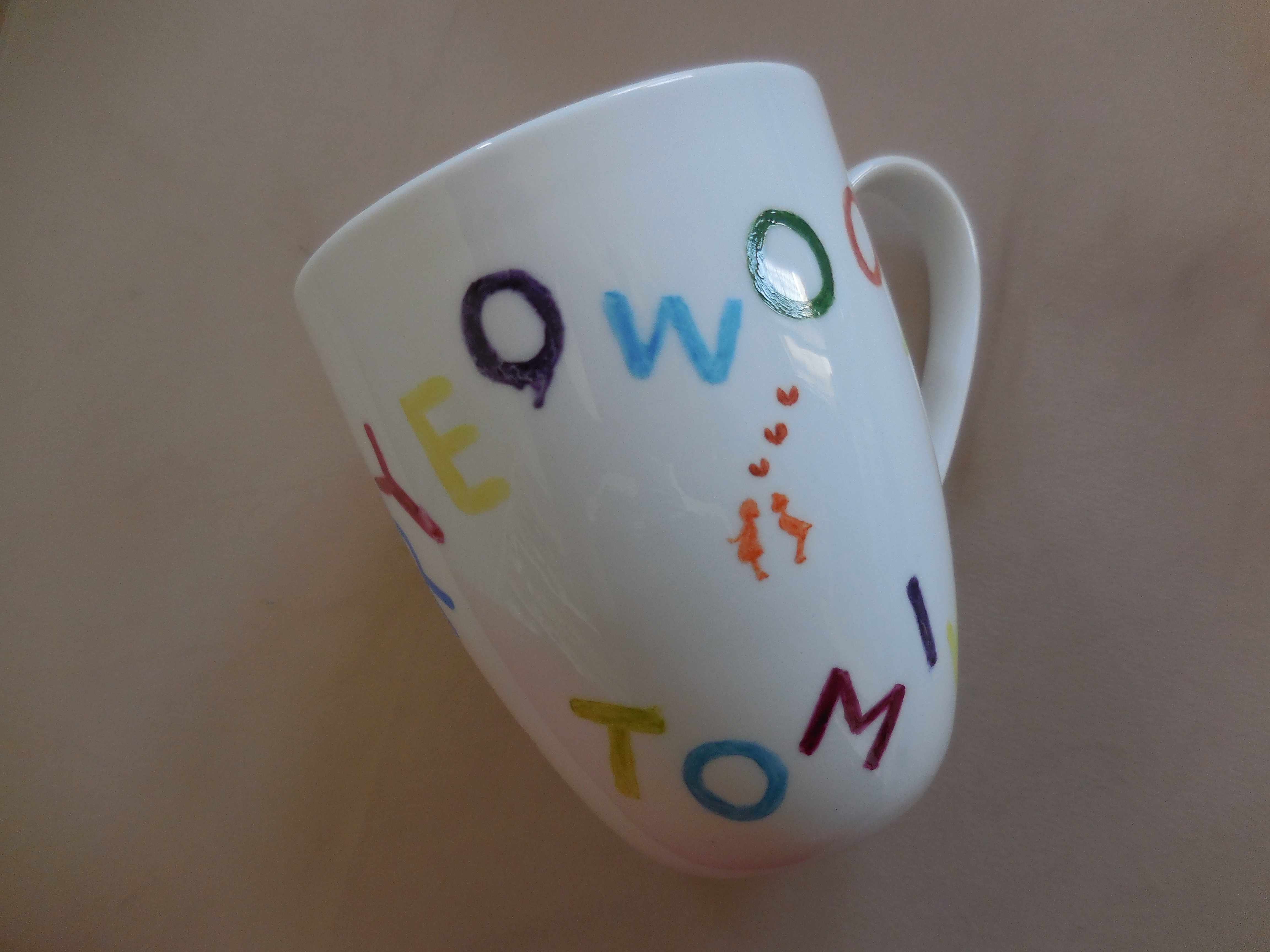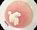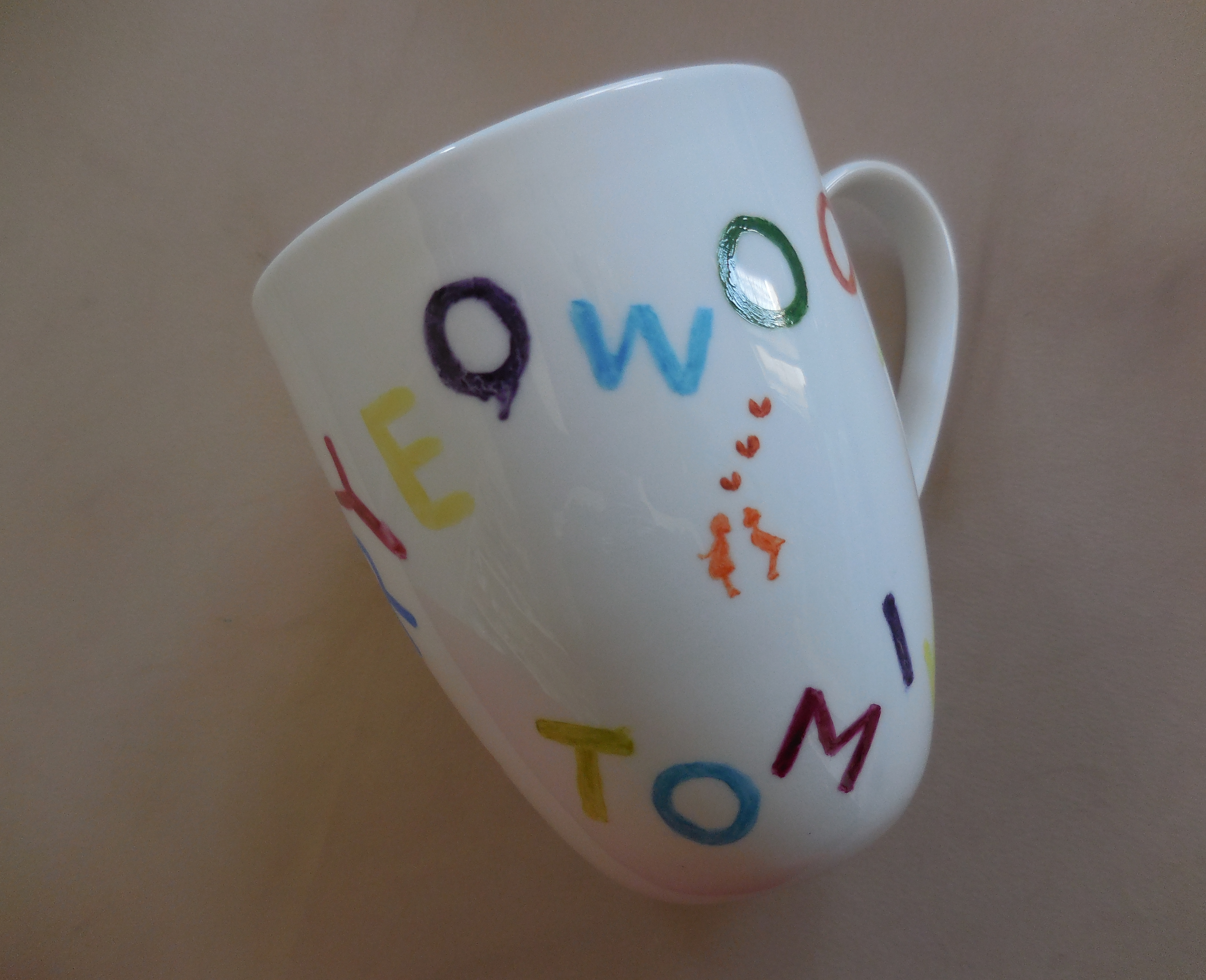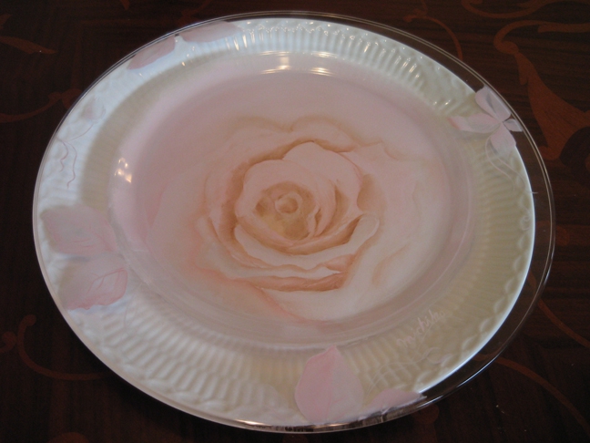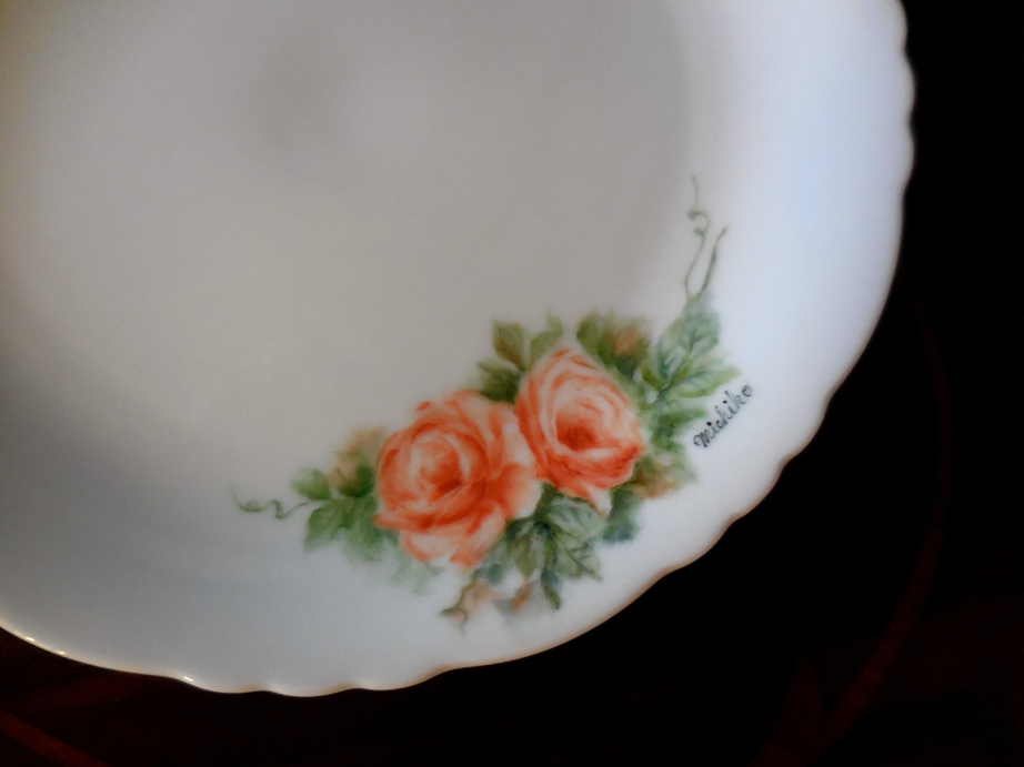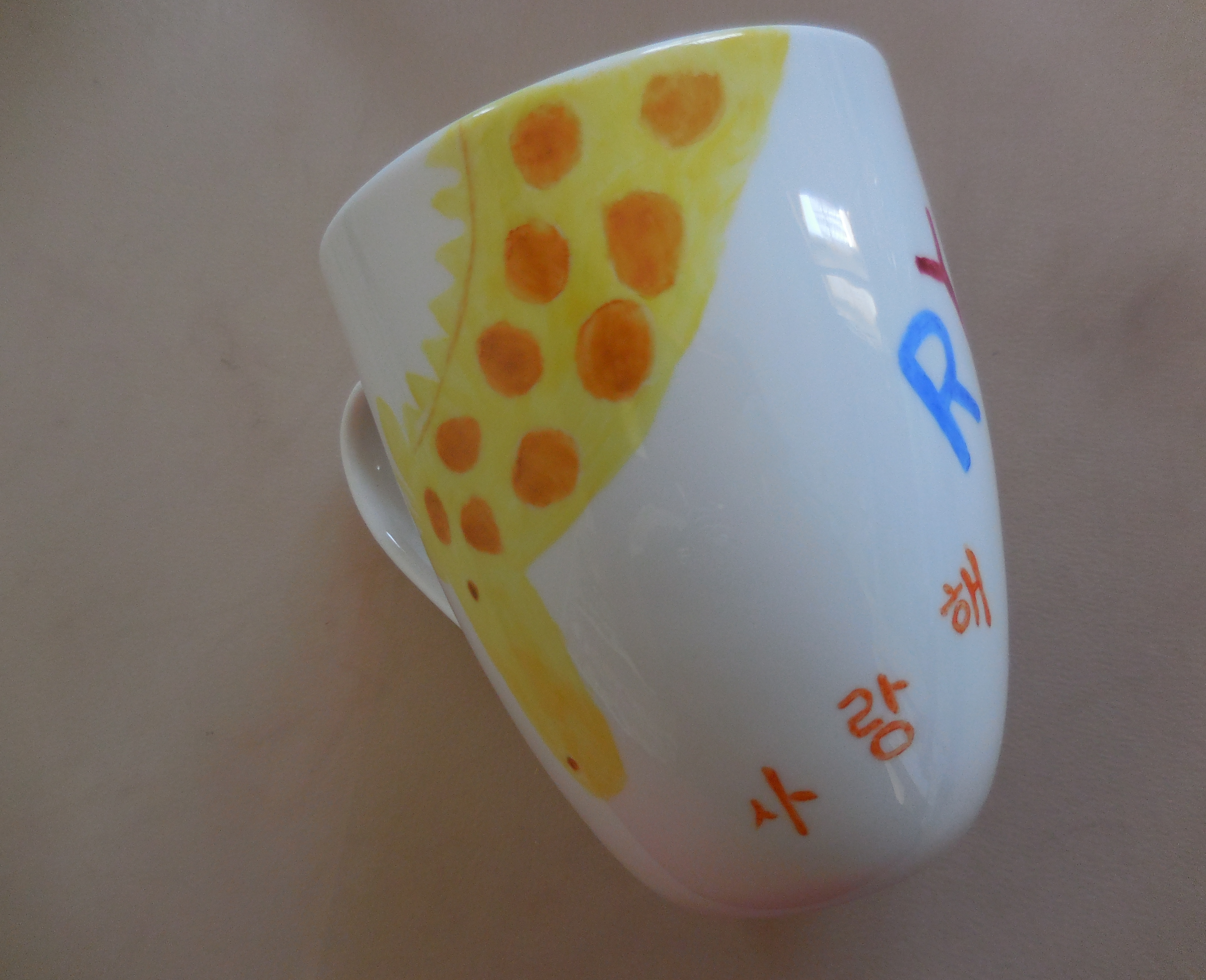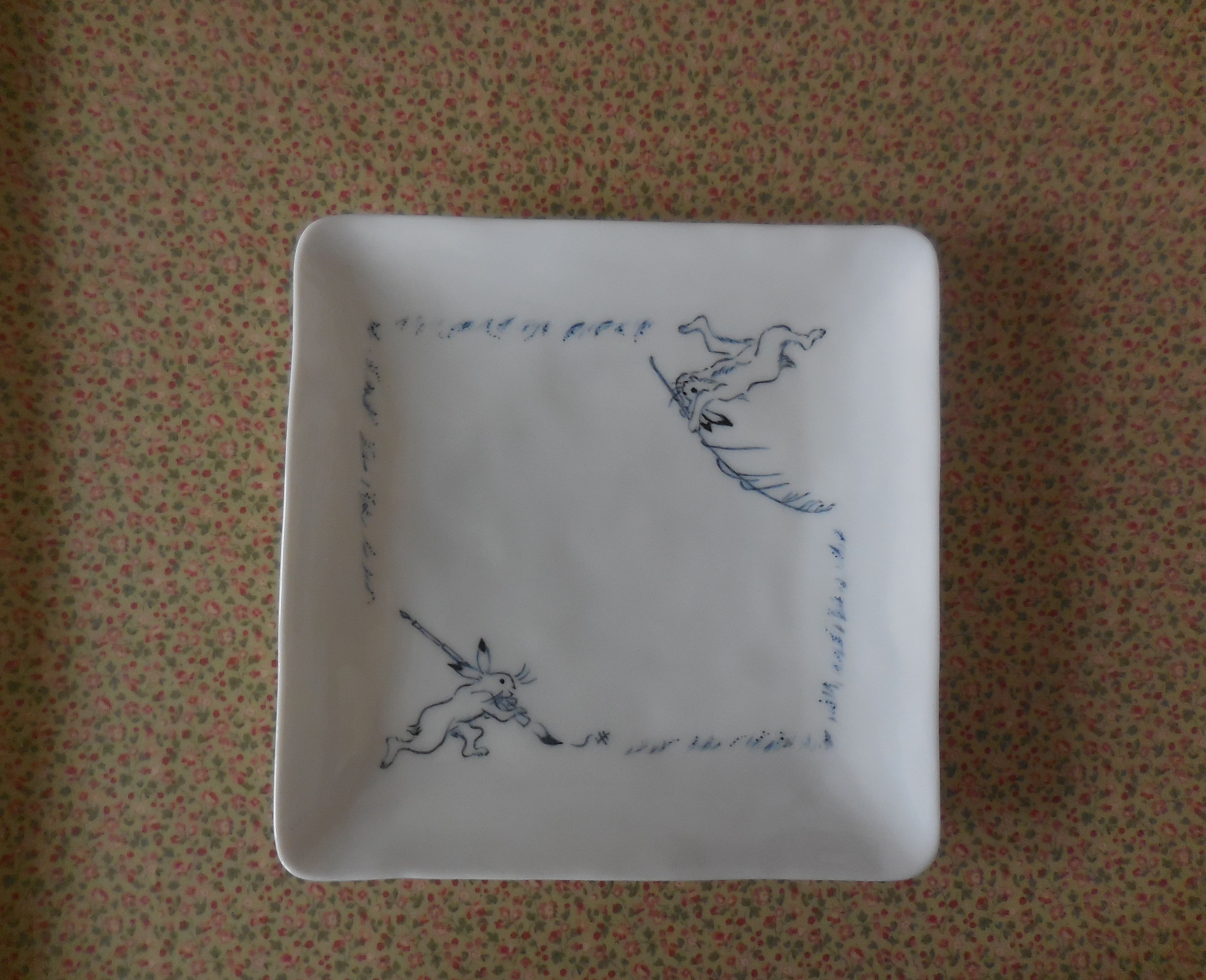 メディウムで溶いた専用の絵具で、陶磁器にモチーフを描き
