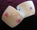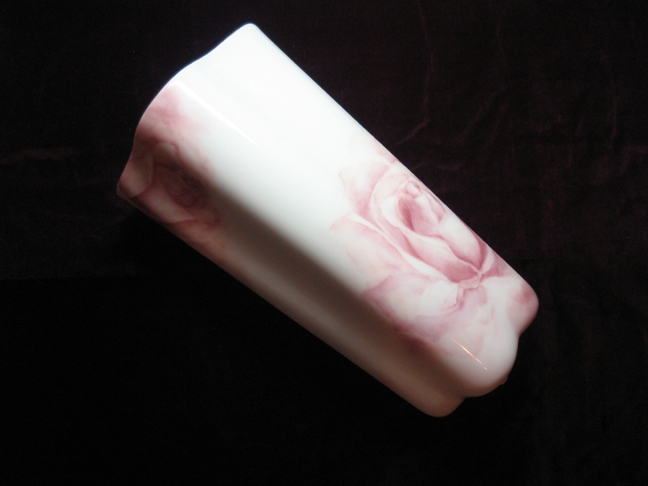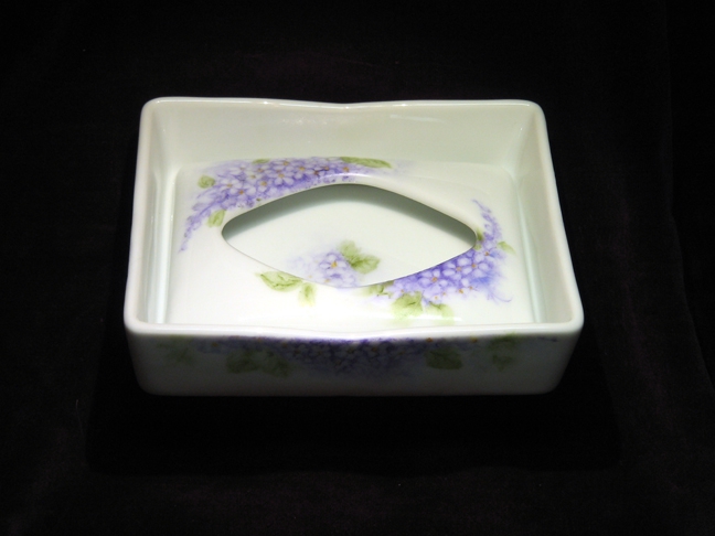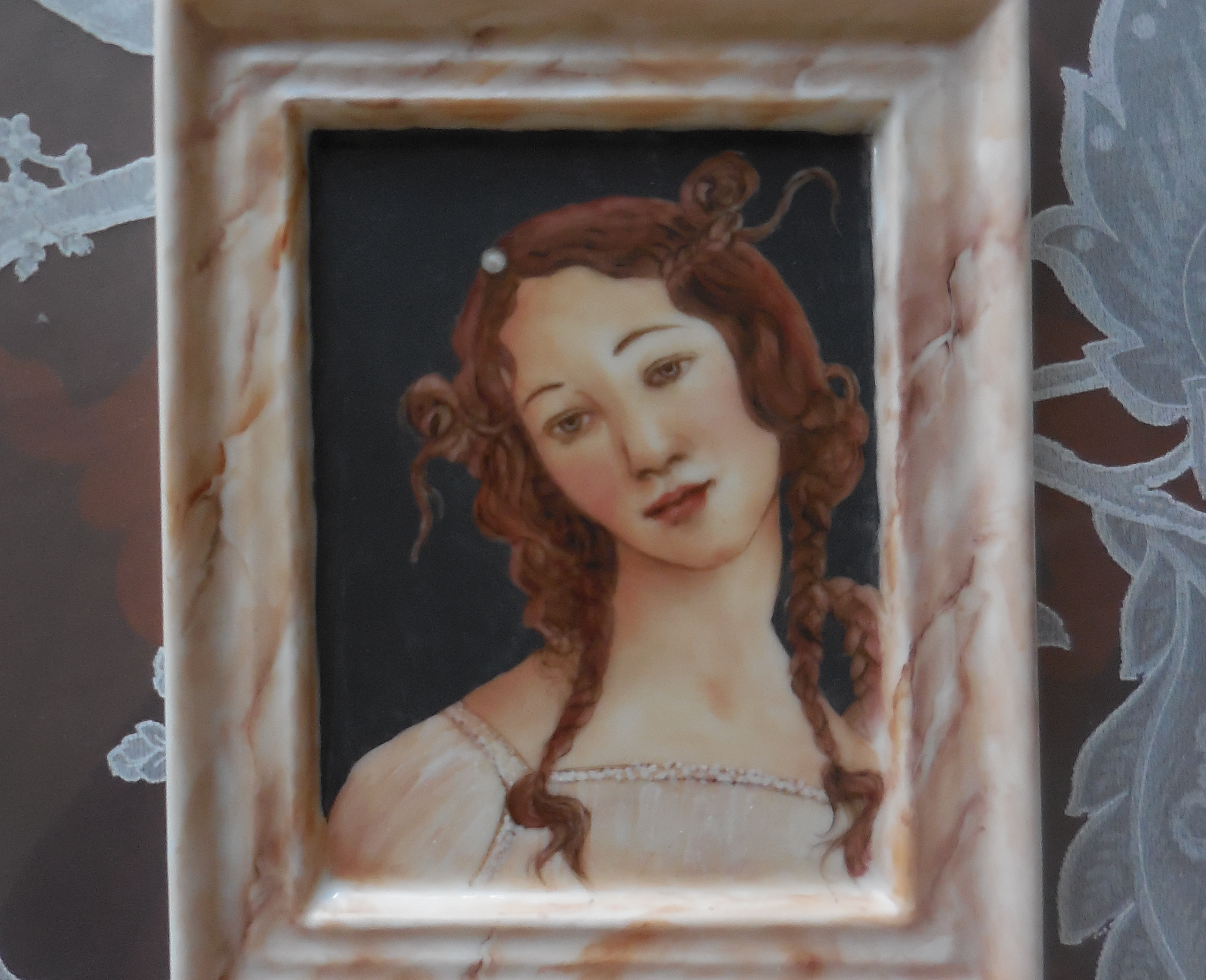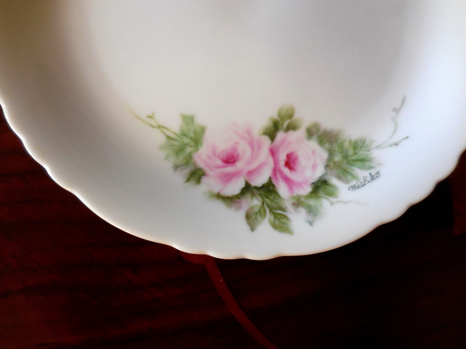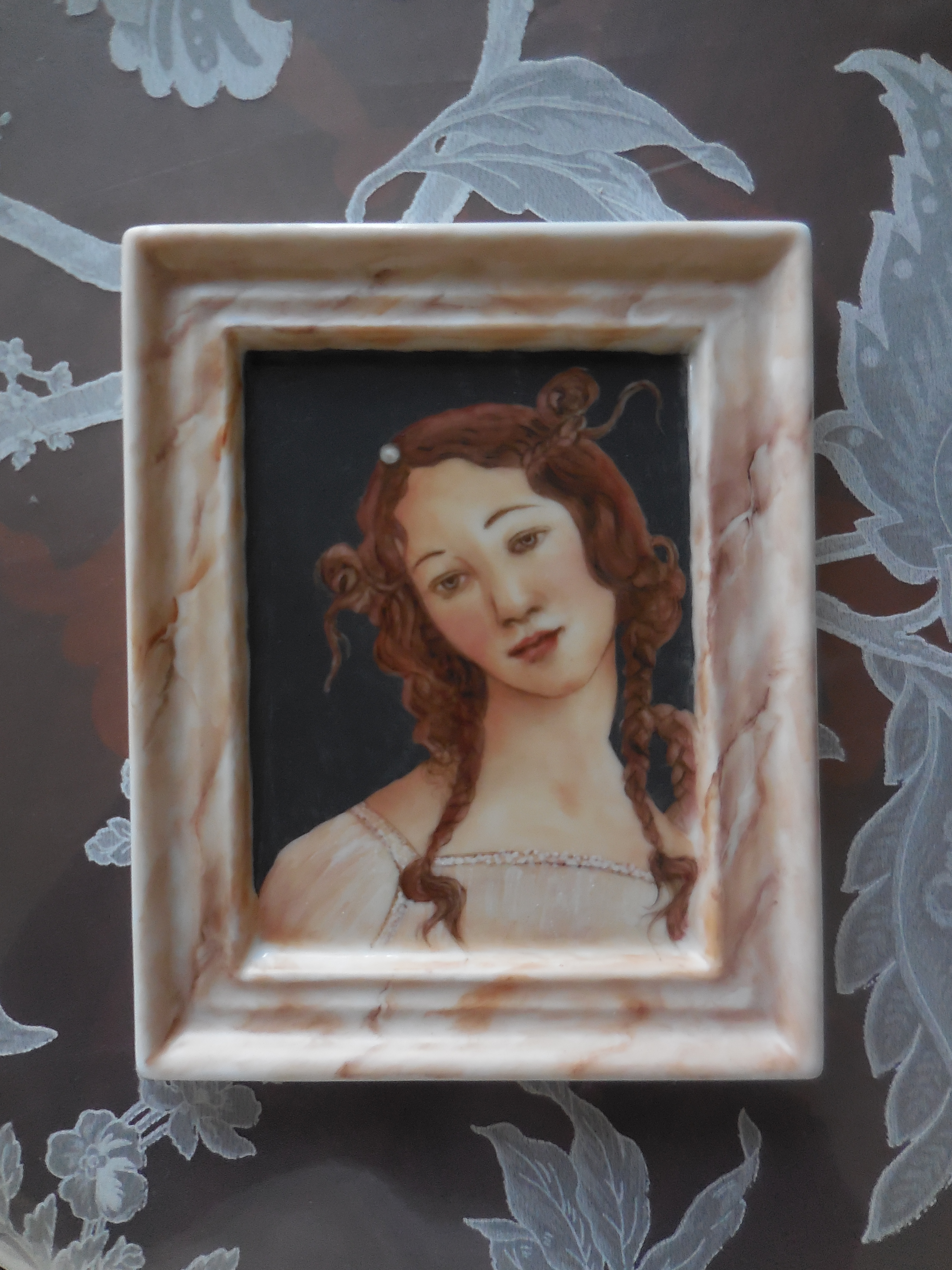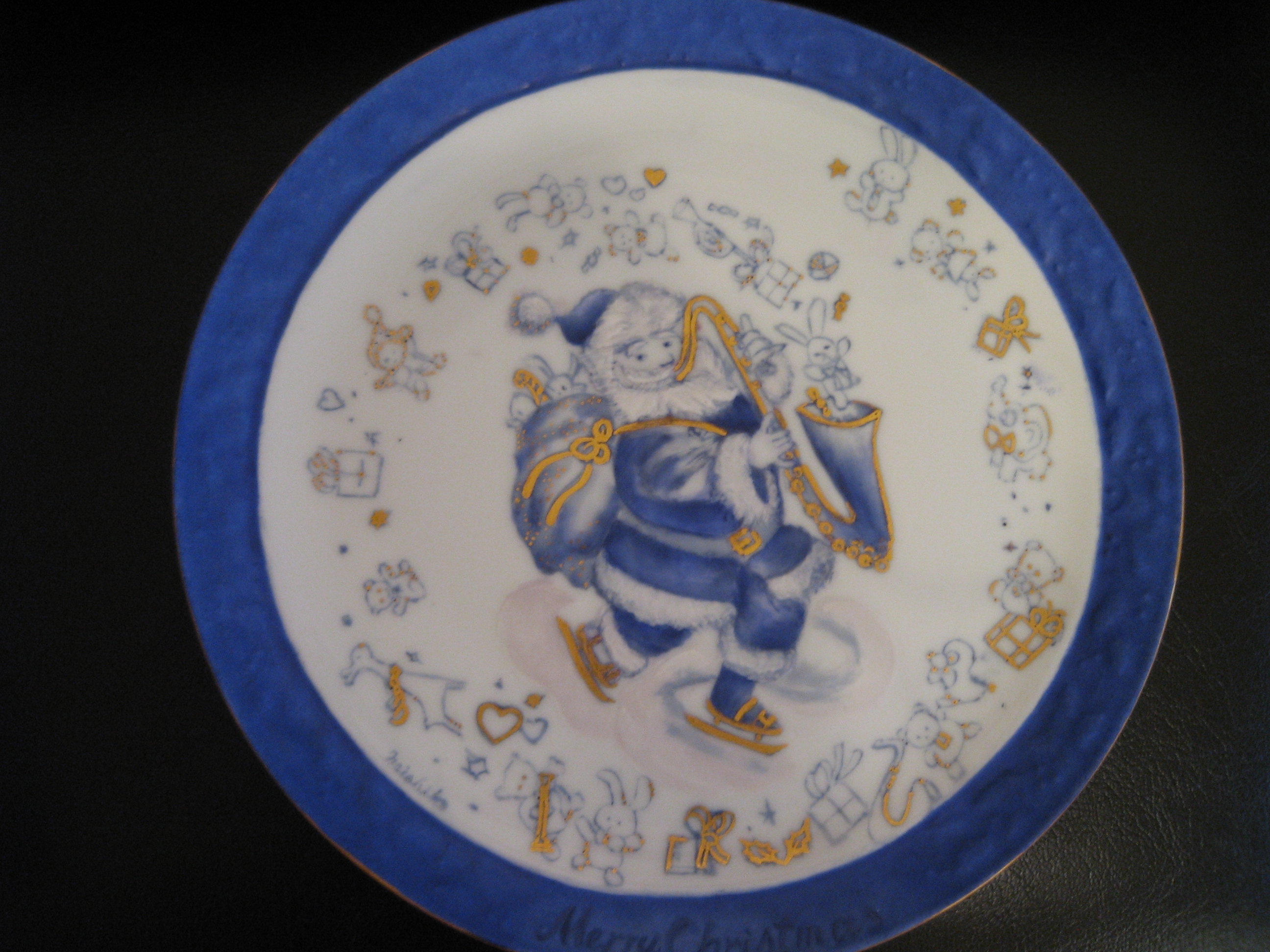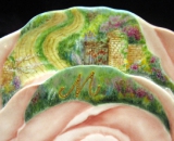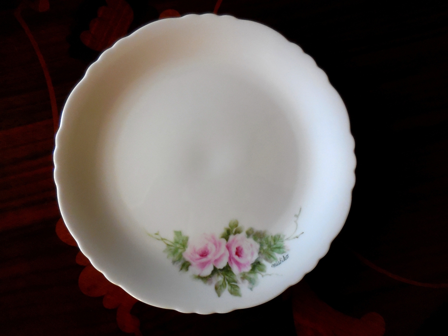 メディウムで溶いた専用の絵具で、陶磁器にモチーフを描き