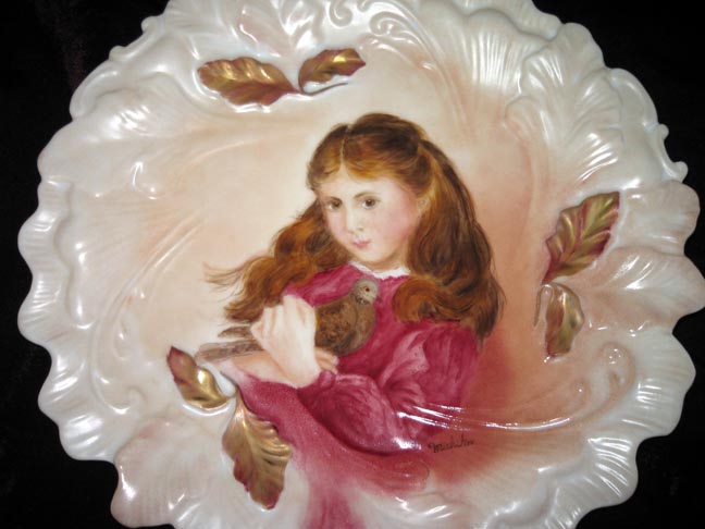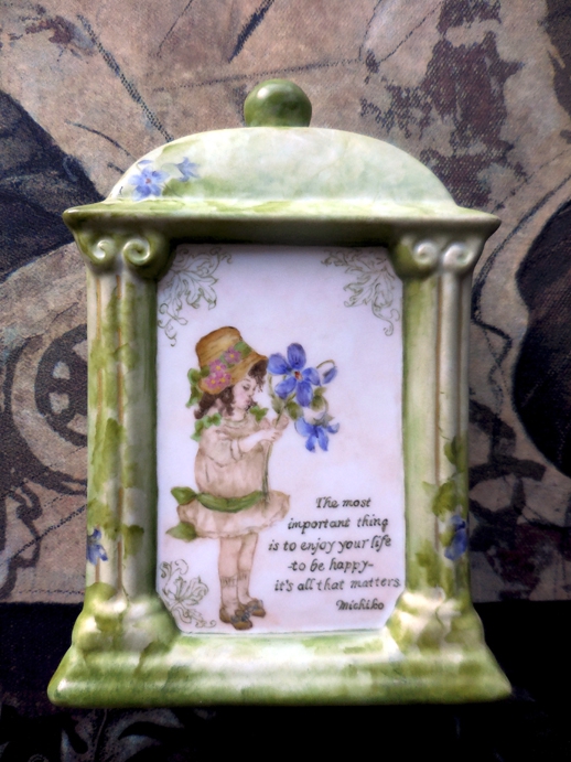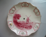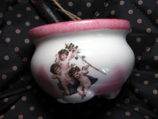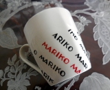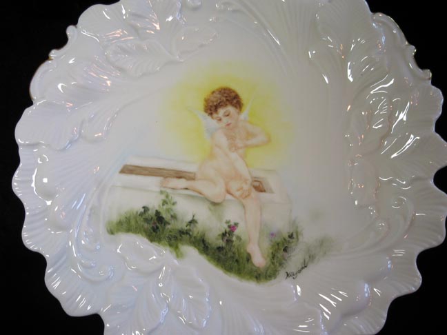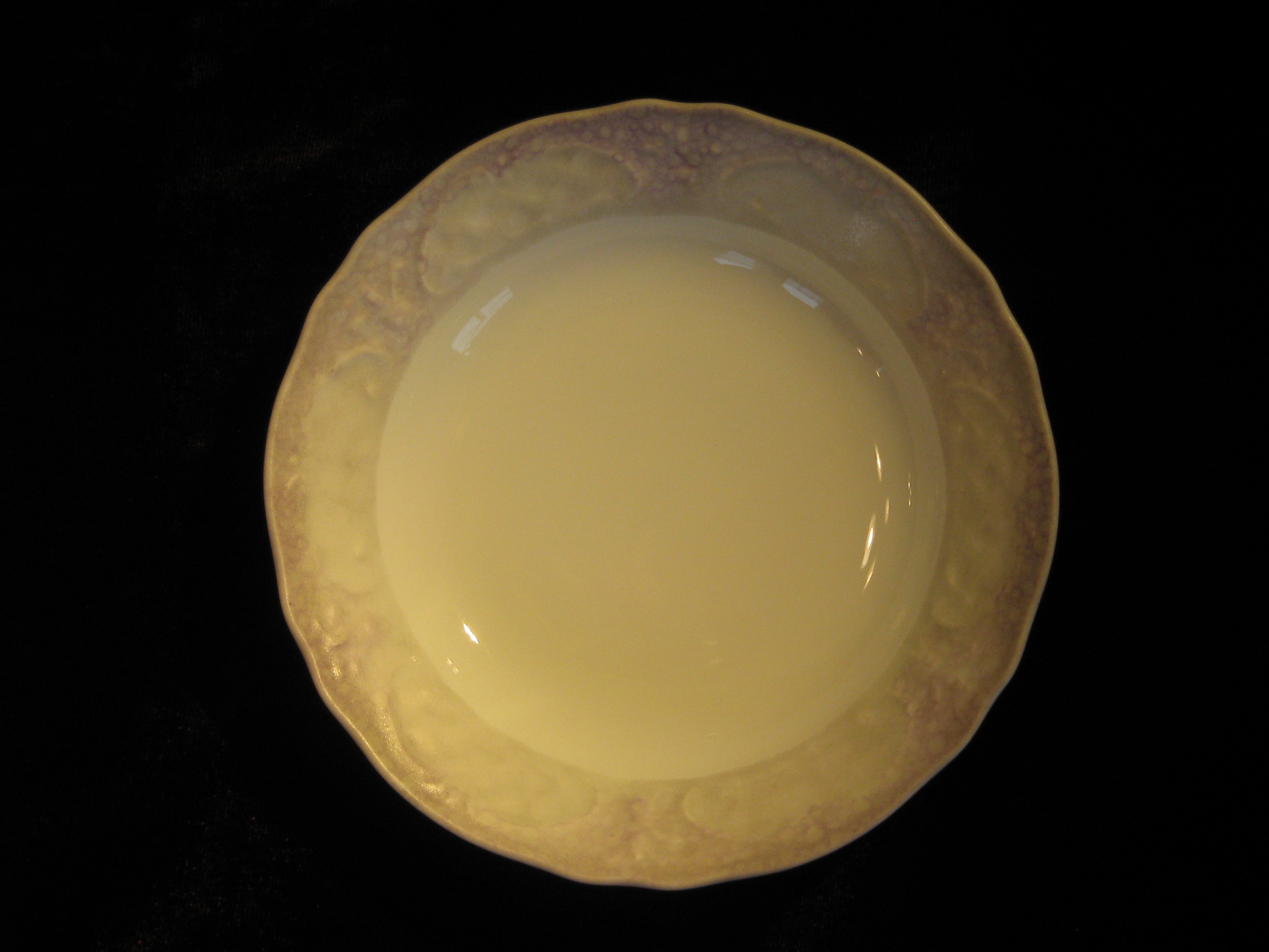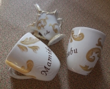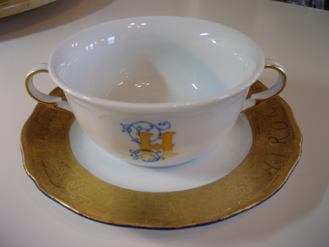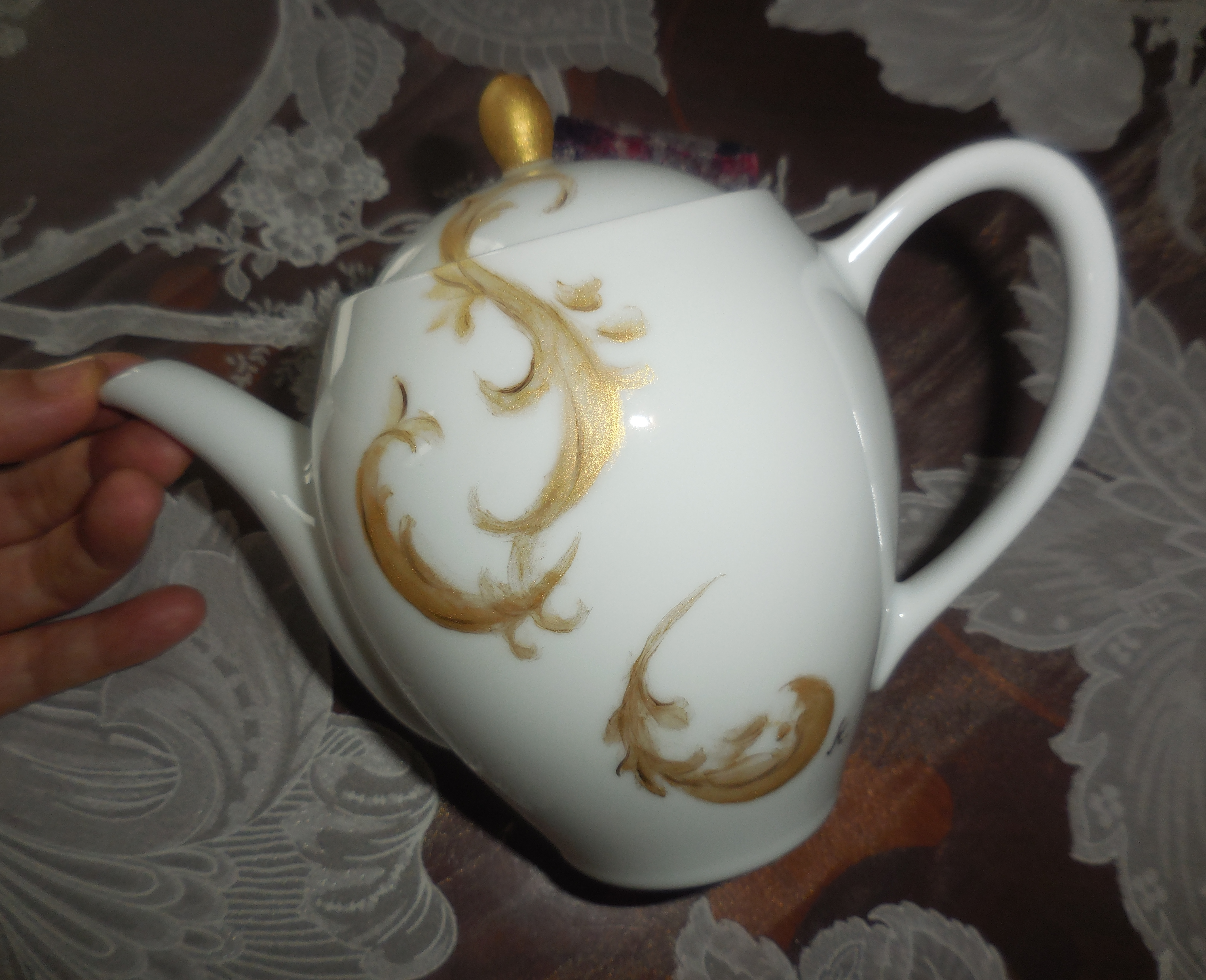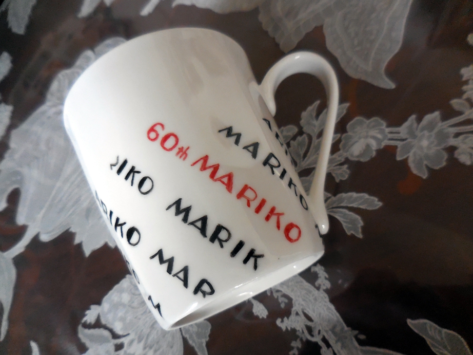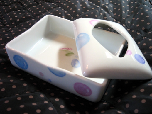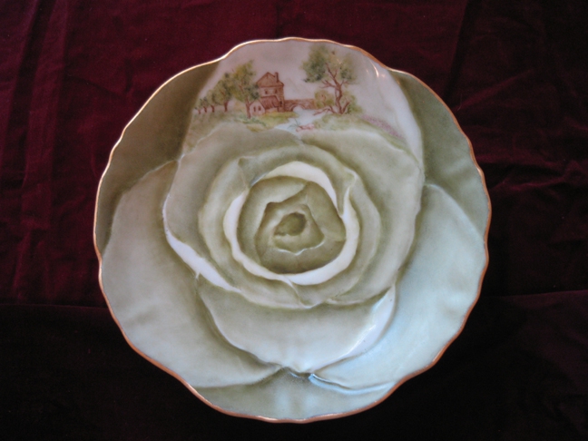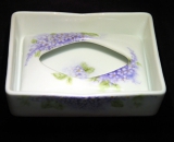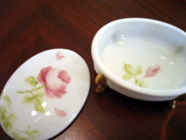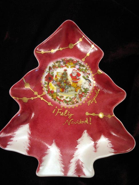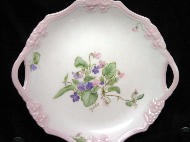 メディウムで溶いた専用の絵具で、陶磁器にモチーフを描き