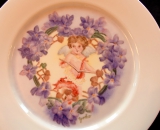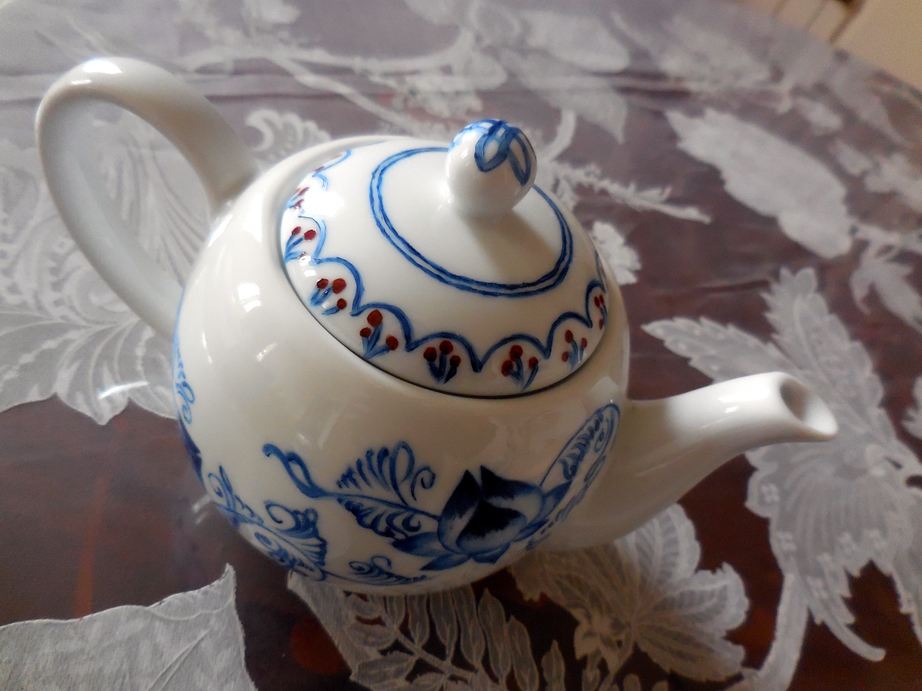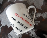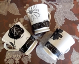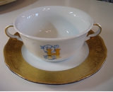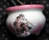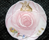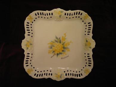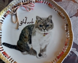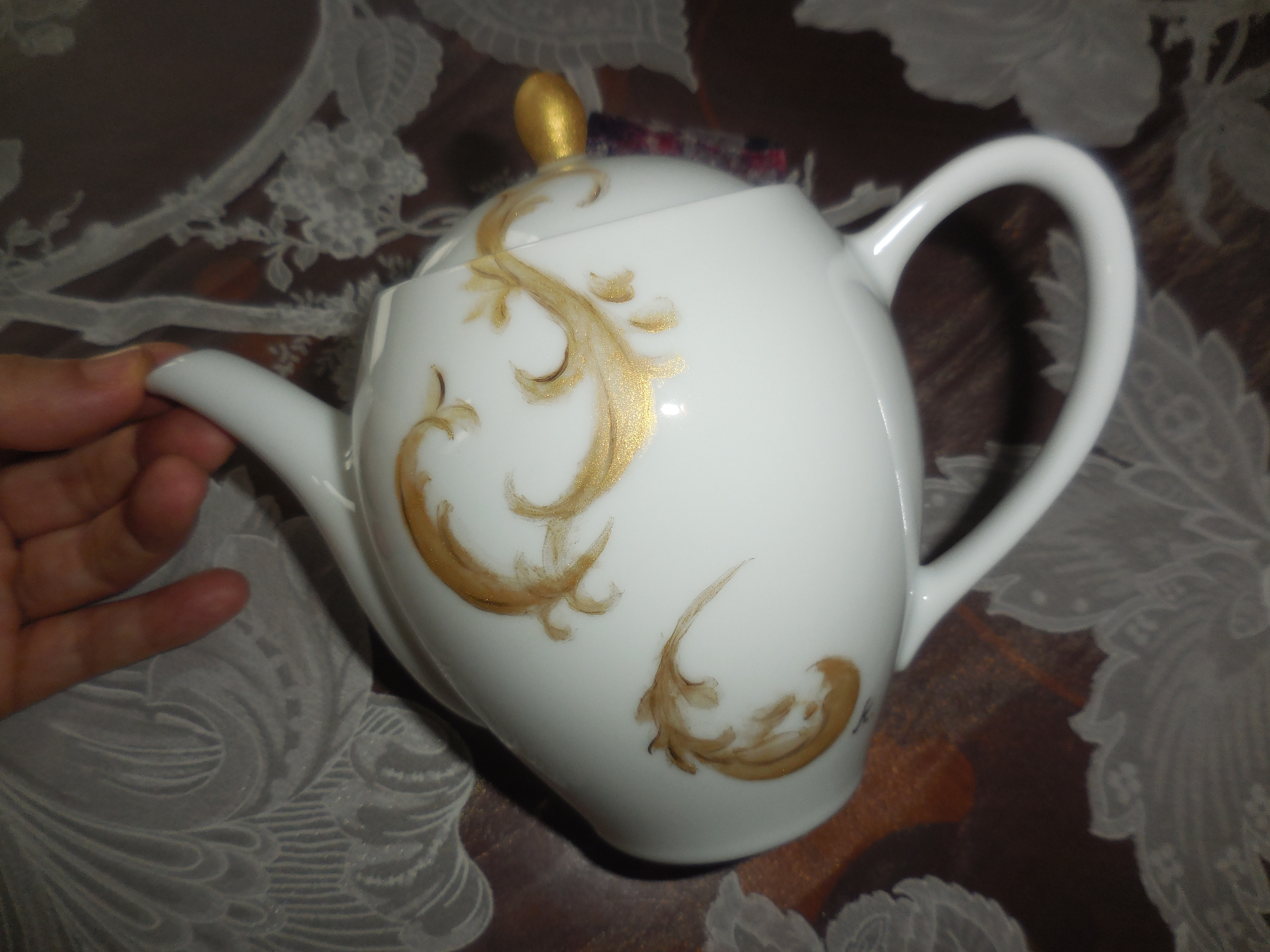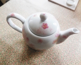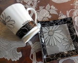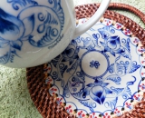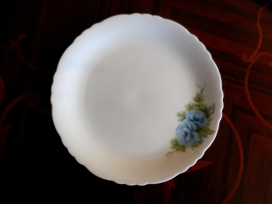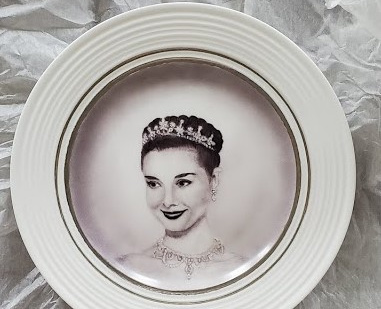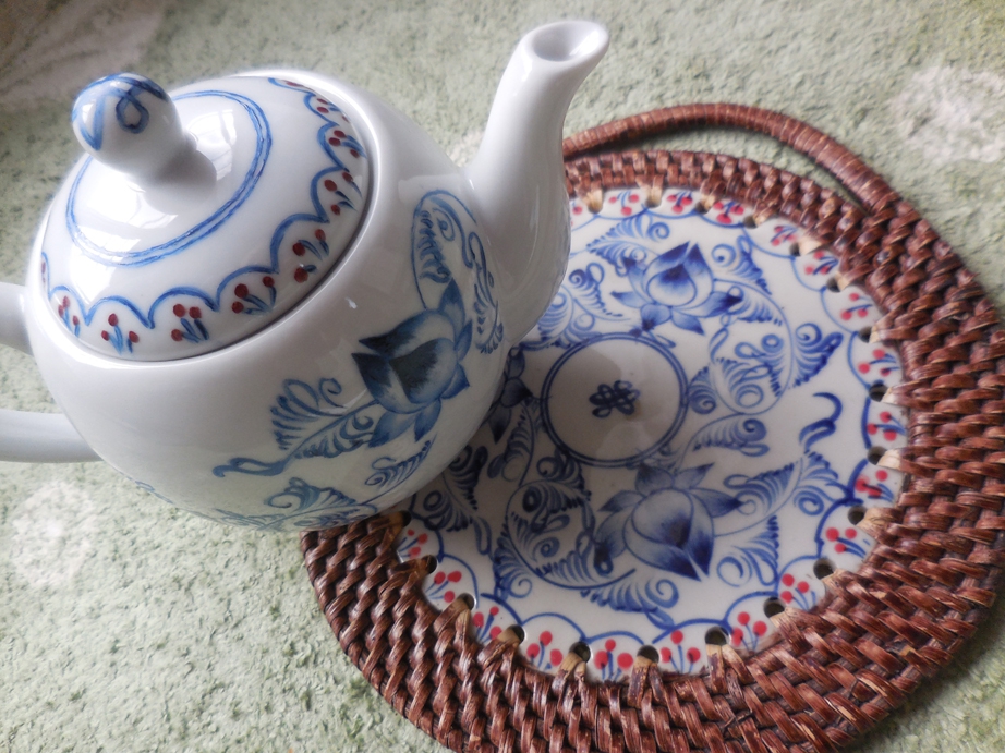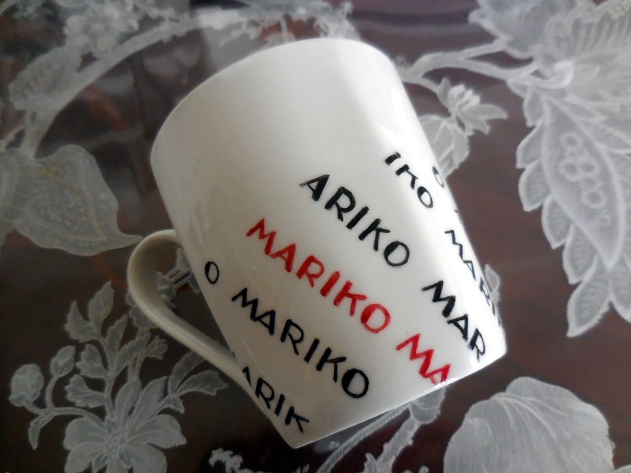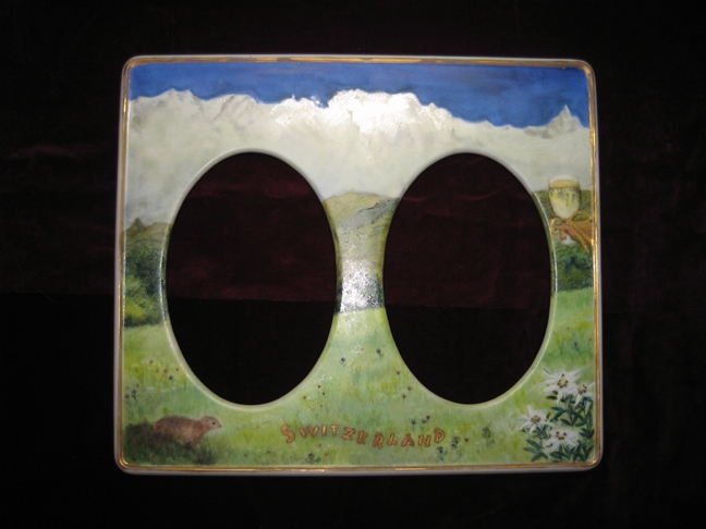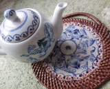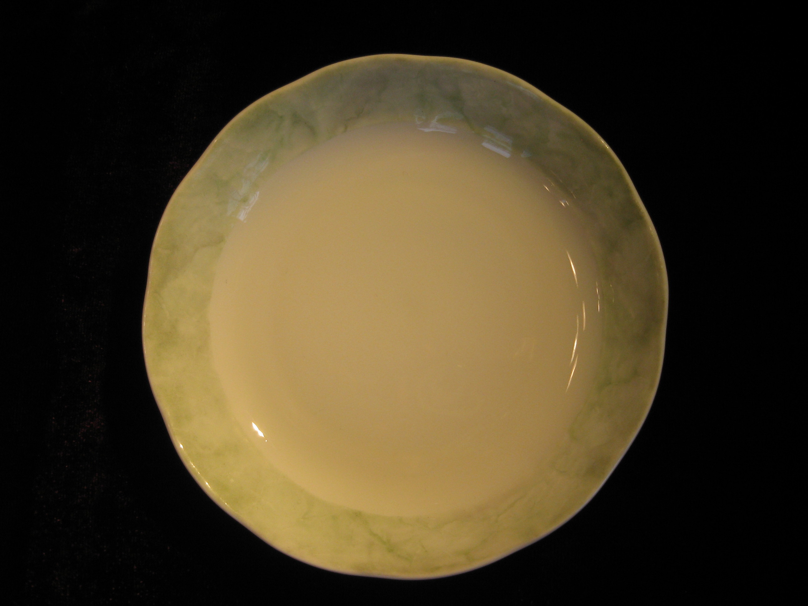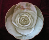 メディウムで溶いた専用の絵具で、陶磁器にモチーフを描き