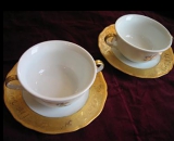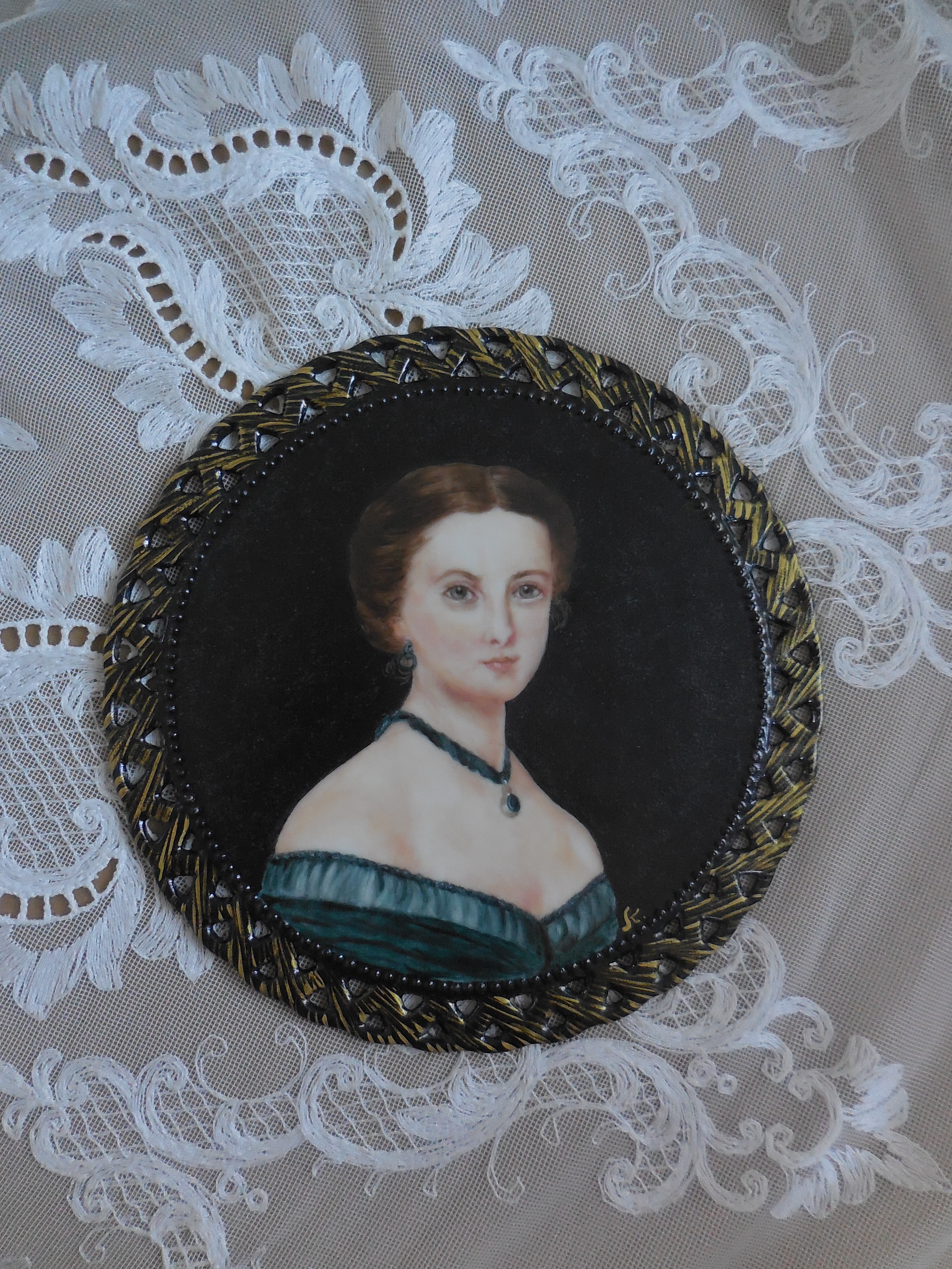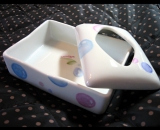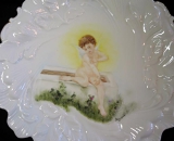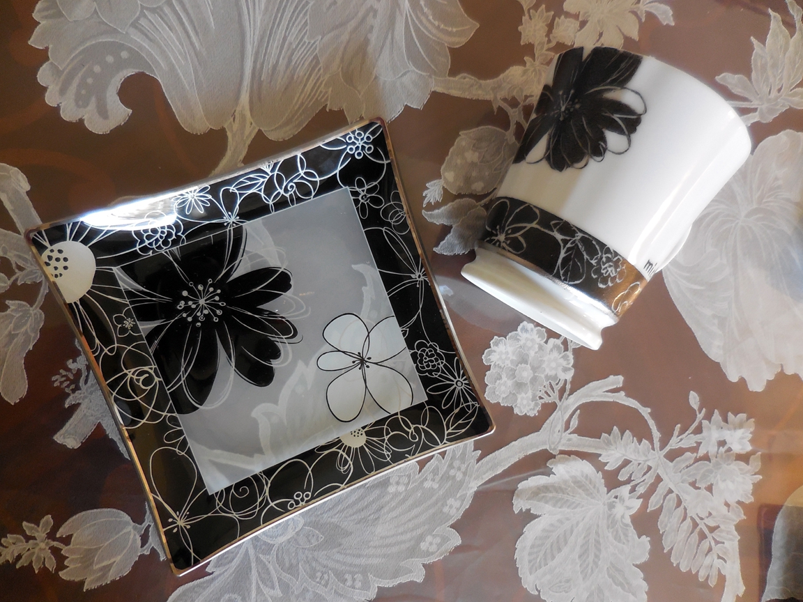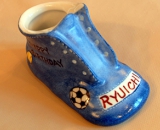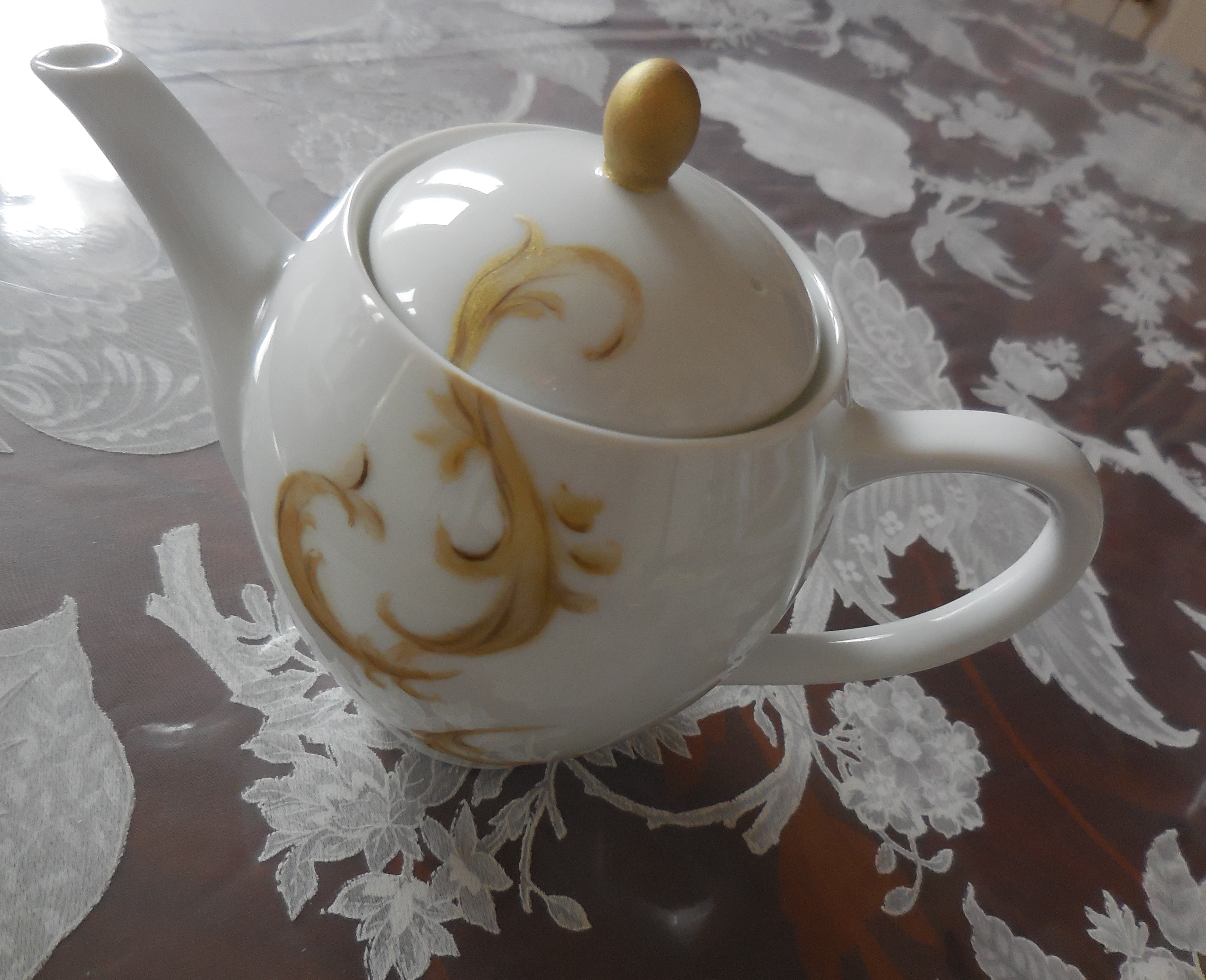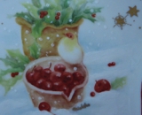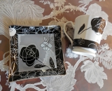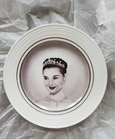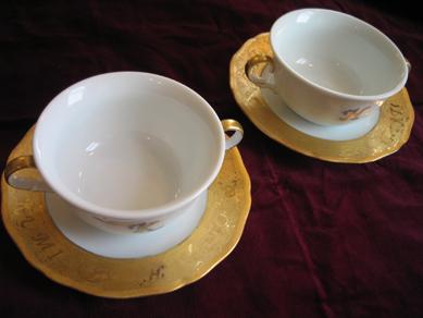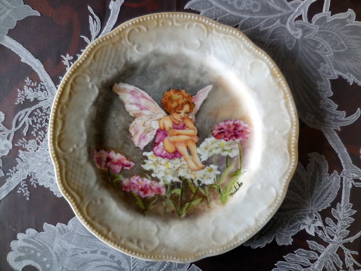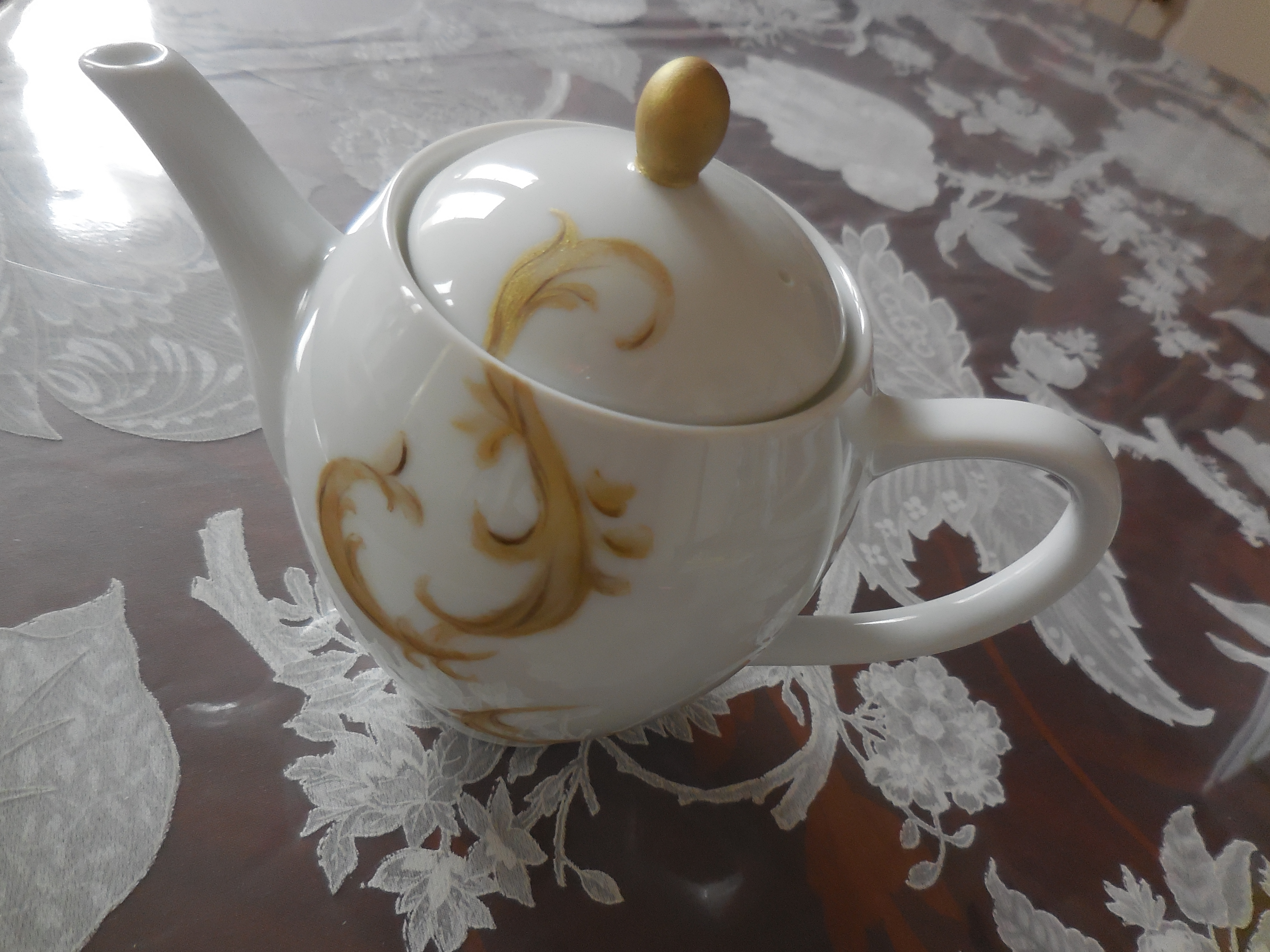 メディウムで溶いた専用の絵具で、陶磁器にモチーフを描き