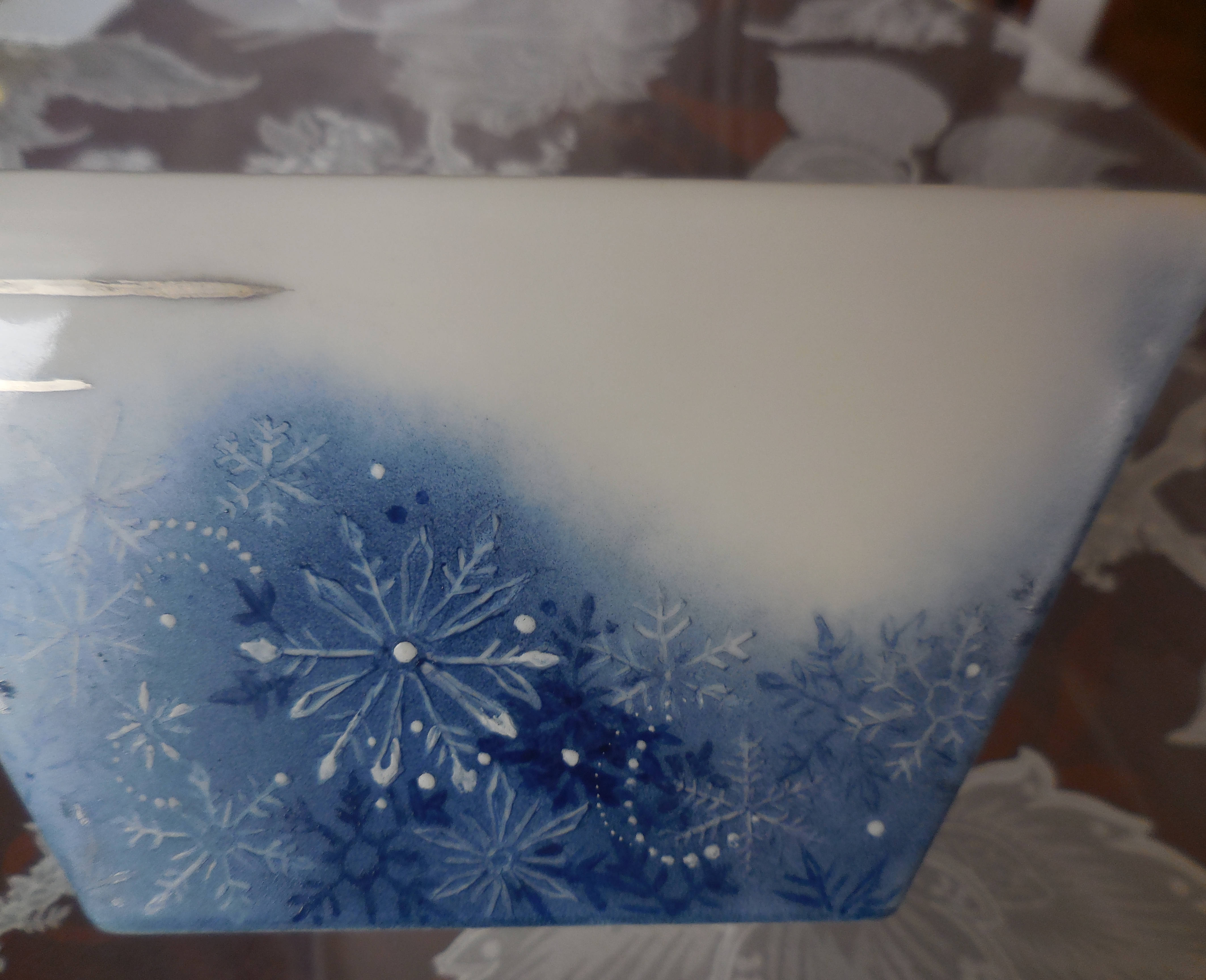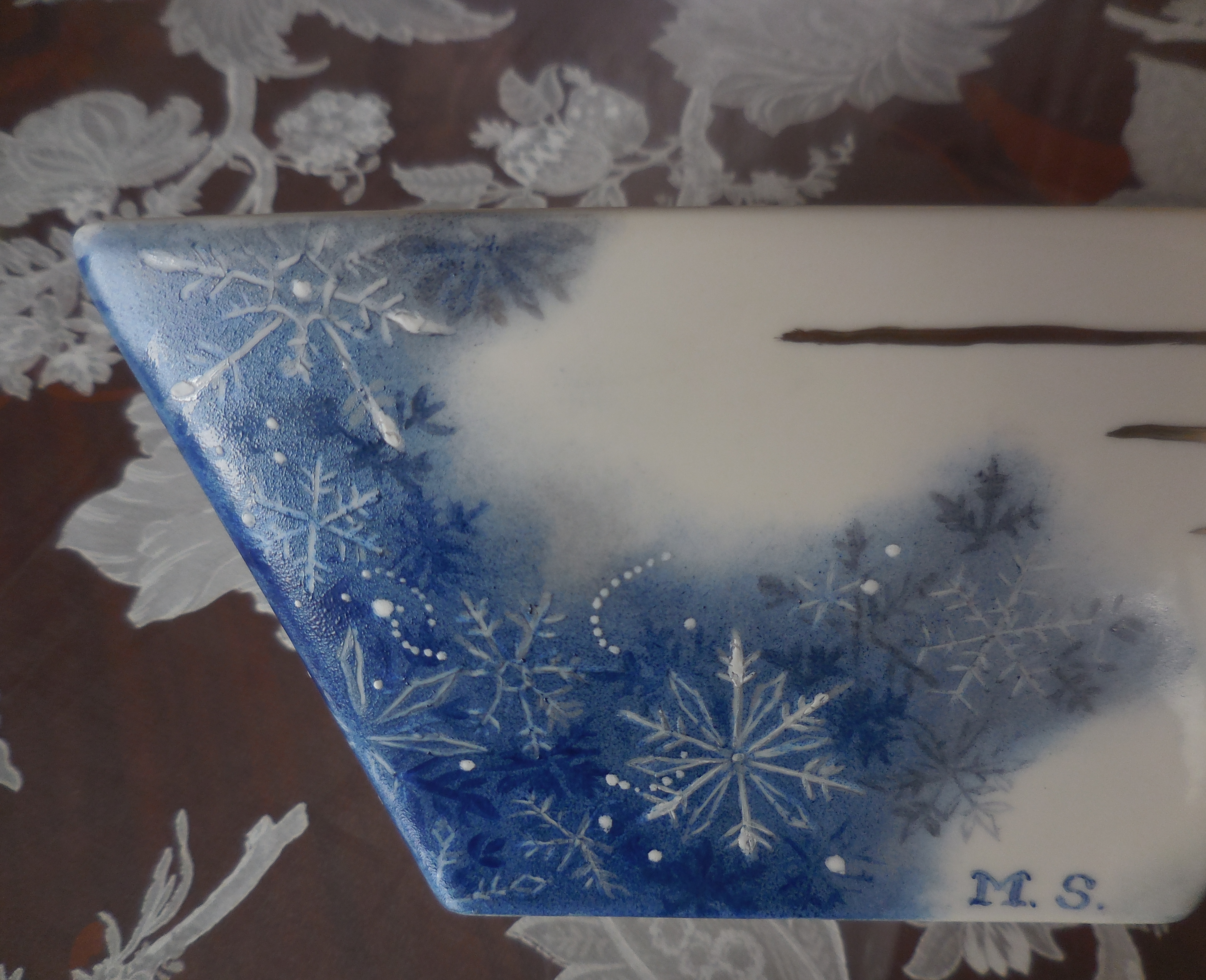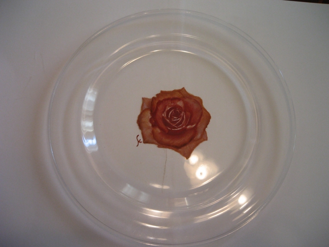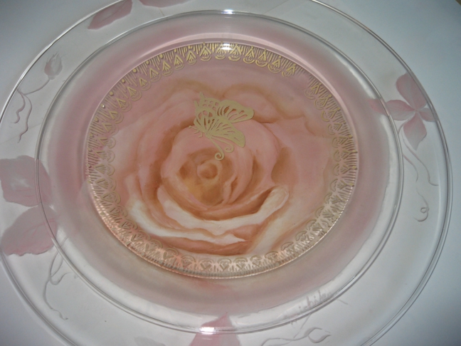 ガラス専用の絵の具を用い、低温焼成で仕上げてゆきます。