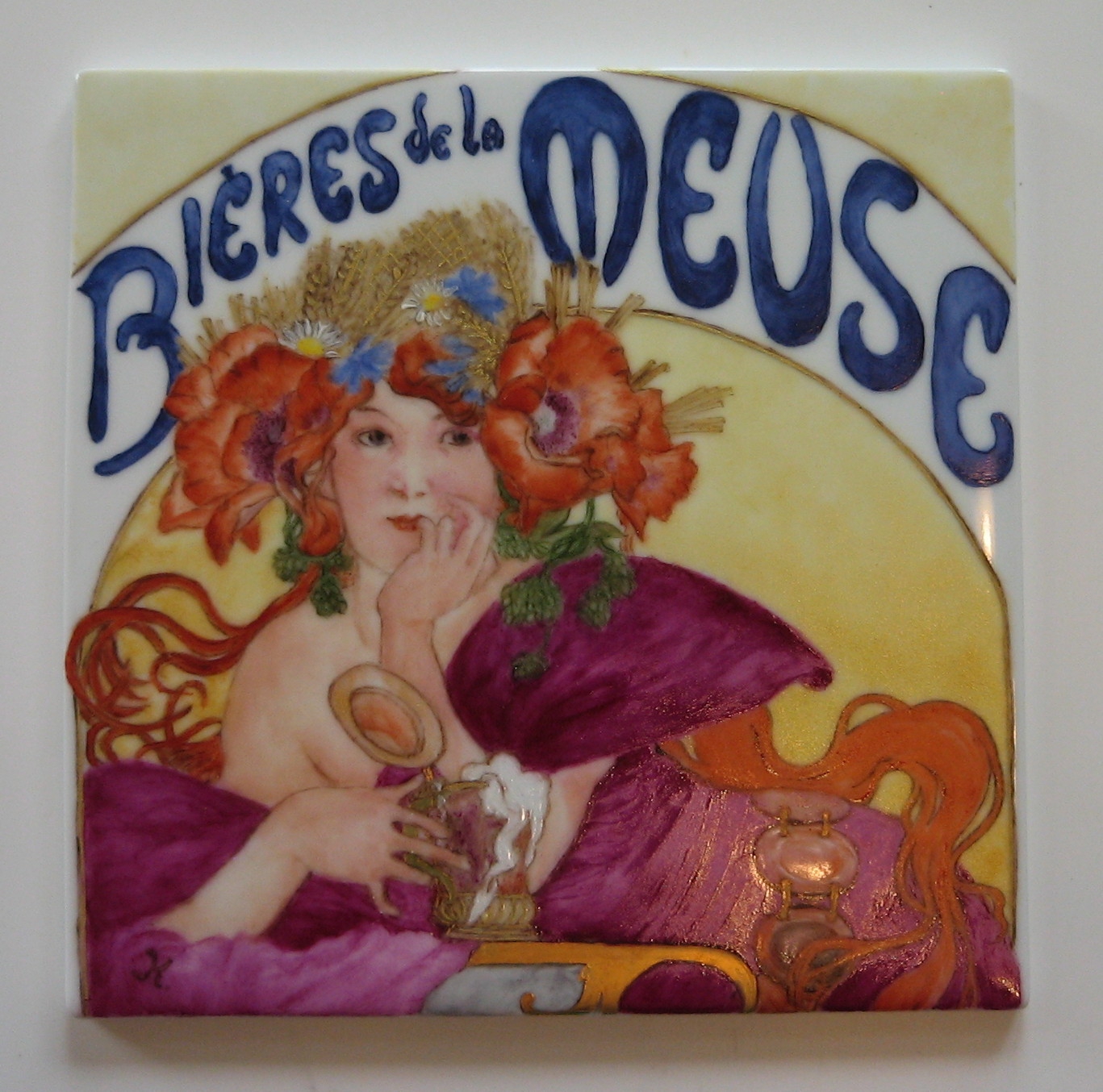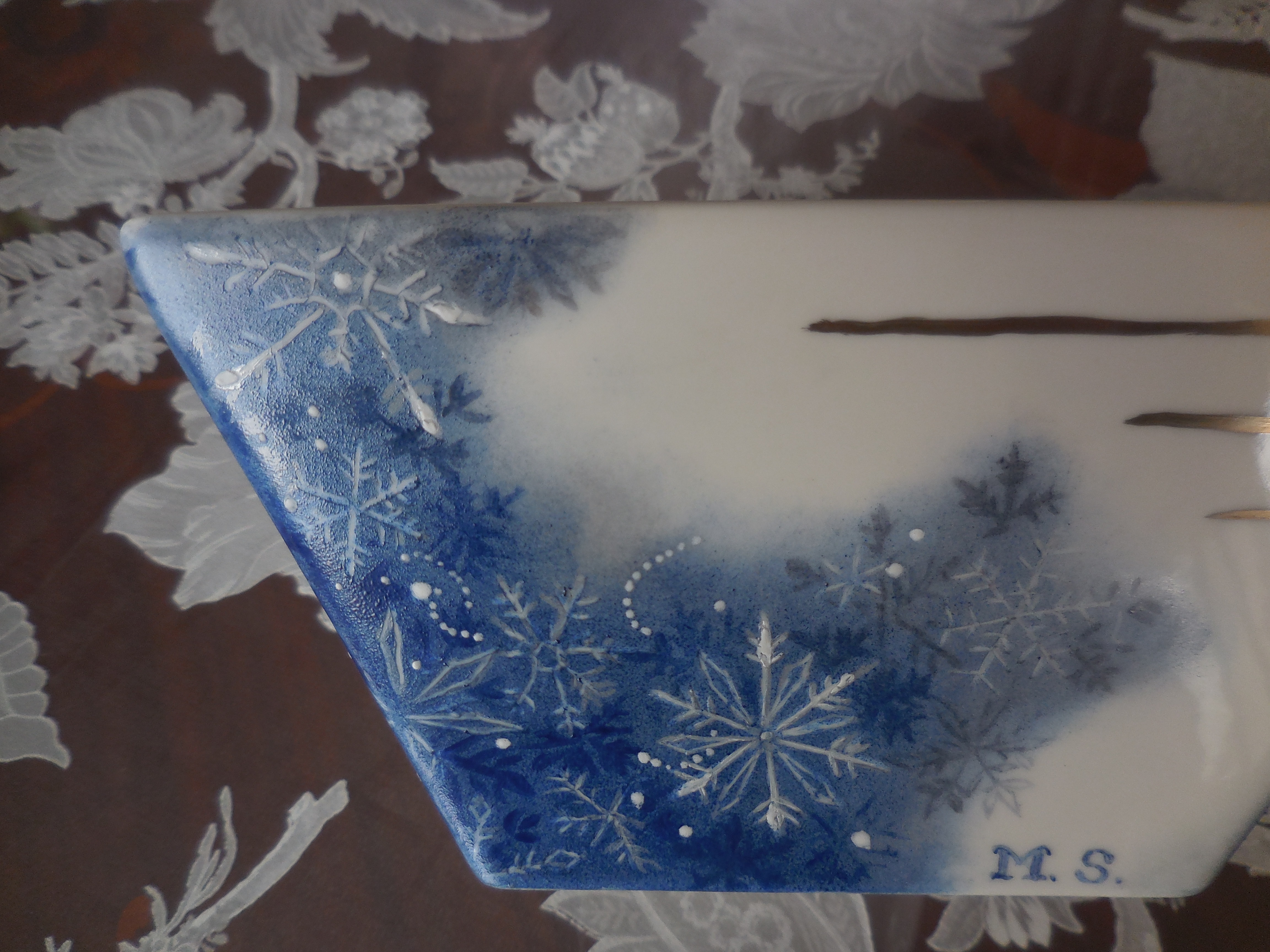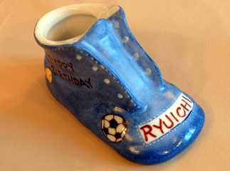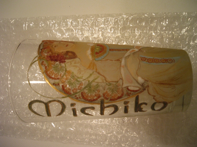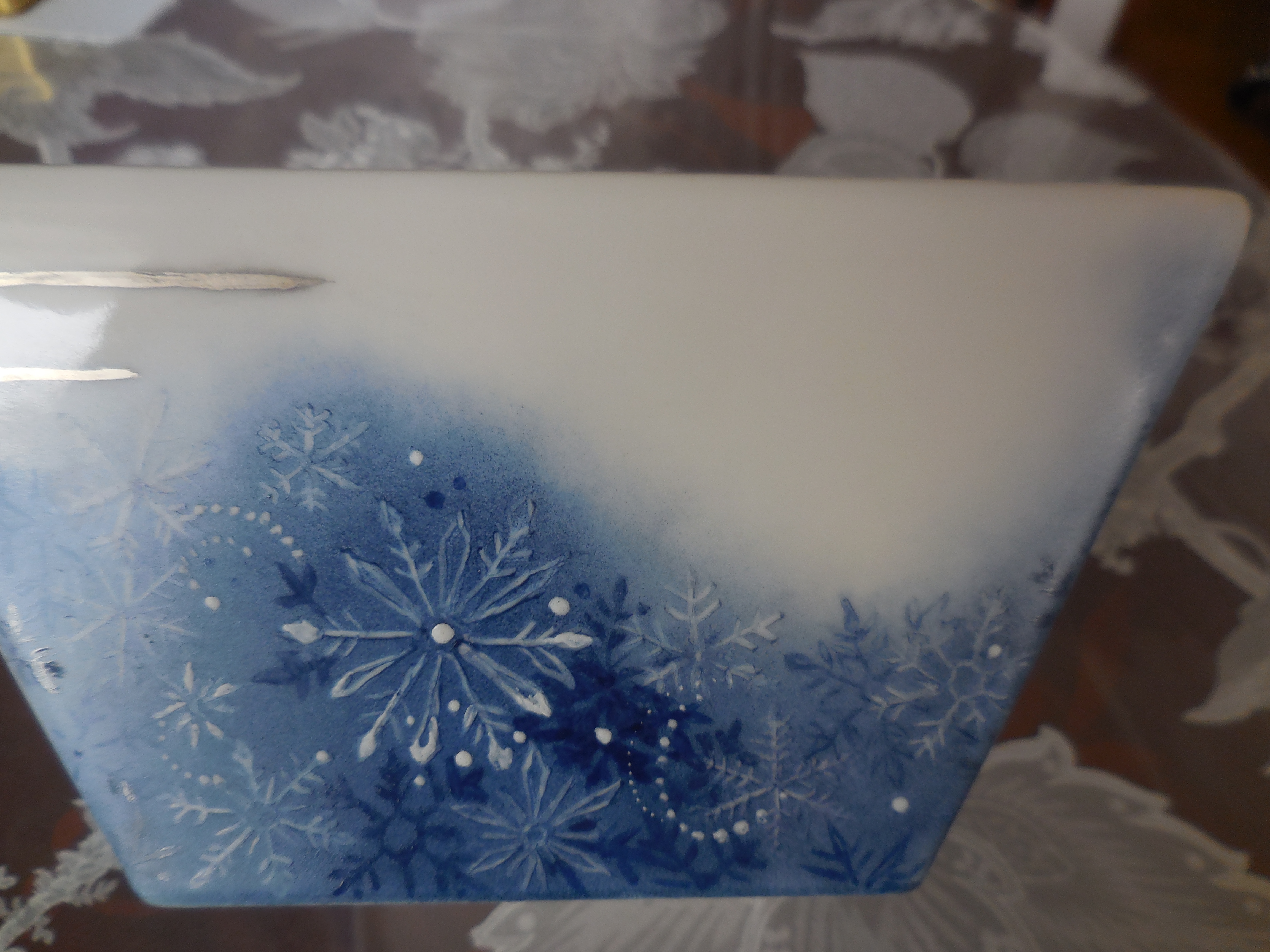 ガラス専用の絵の具を用い、低温焼成で仕上げてゆきます。